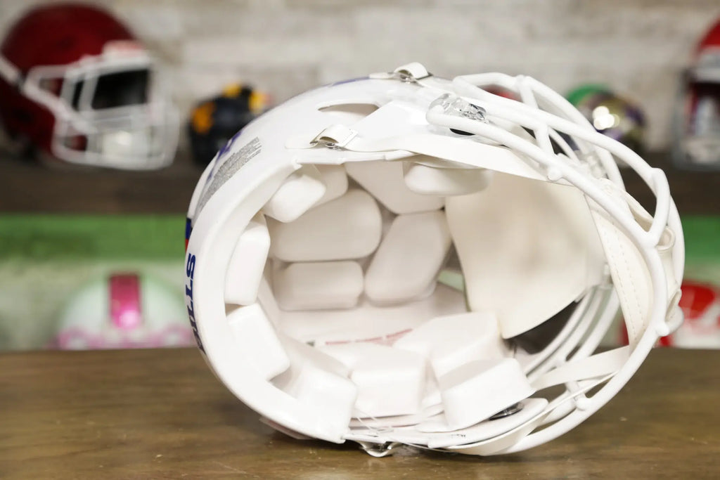 ¡El casco Riddell Speed es uno de los estilos más populares e icónicos de la historia y uno de los más buscados por los coleccionistas! Estos cascos con licencia oficial son perfectos para exhibir, coleccionar autógrafos y mostrar su espíritu de equipo. Recomendamos que su casco se muestre de manera destacada en un estante o en la pared con un colgador de cascos , ¡de la misma manera que lo hacemos nosotros y muchos equipos! Disponible en cualquiera de los mismos más de 35 colores que ofrecemos para máscaras faciales, cada percha está recubierta a pedido.