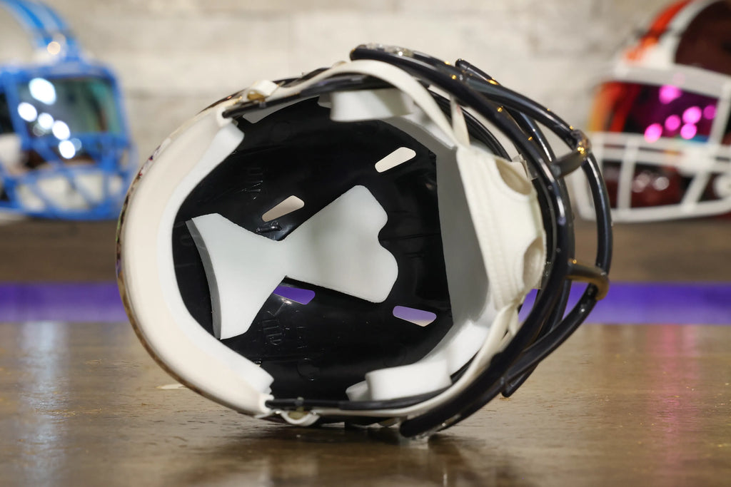 Mini Helmets are an easy and affordable way to join the collectors club and they make a perfect gift that everyone loves without breaking the bank! Mini helmets are about half the size of the Authentic and Replica helmets. They model the official team designs and colors on a smaller scale. Coming in at about 6” tall, you can collect all your teams’ mini’s without taking up much room. Put them on your desk, a shelf, your dashboard, or get a Mini Helmet Hanger and put them on the wall!