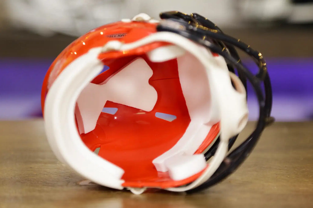 ¡Los minicascos Riddell Speed son una manera fácil y económica de unirse al club de coleccionistas y son un regalo perfecto que a todos les encanta sin tener que gastar mucho dinero! Los minicascos Riddell tienen aproximadamente la mitad del tamaño de los cascos Authentic y Replica. Modelan los diseños y colores oficiales del equipo a menor escala. Con una altura de aproximadamente 6 ", puede recolectar los minis de todos sus equipos sin ocupar mucho espacio. ¡Póngalos en su escritorio, un estante, su tablero de instrumentos, u obtenga un Mini colgador de cascos y colóquelos en la pared!
