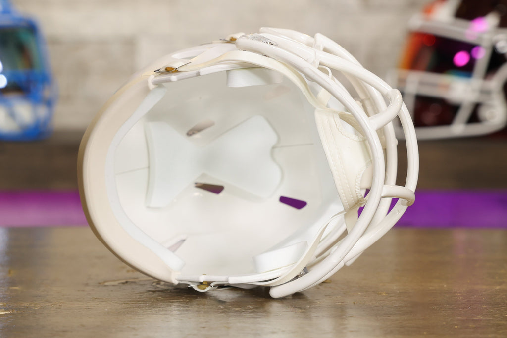 The Riddell Speed Mini Helmets are an easy and affordable way to join the collectors club and they make a perfect gift that everyone loves without breaking the bank! Riddell mini helmets are about half the size of the Authentic and Replica helmets. They model the official team designs and colors on a smaller scale. Coming in at about 6” tall, you can collect all your teams’ mini’s without taking up much room. Put them on your desk, a shelf, your dashboard, or get a Mini Helmet Hanger and put them on the wall!
