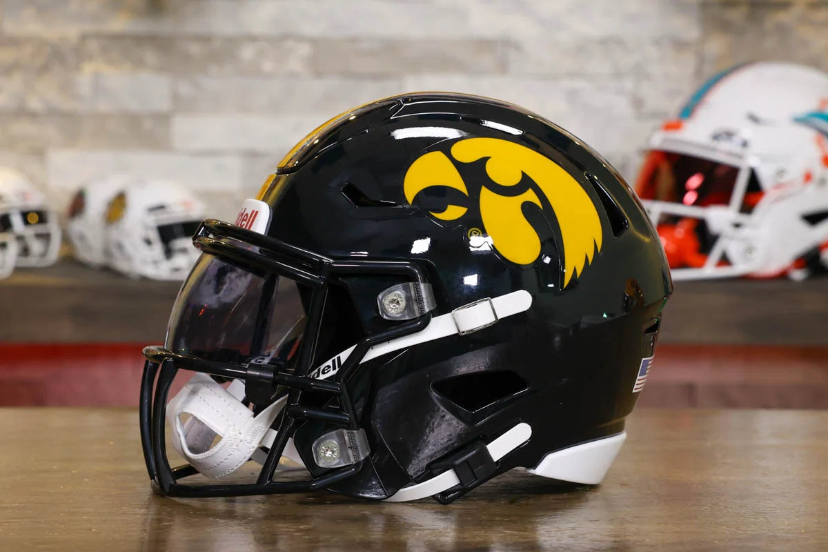 Iowa Hawkeyes SpeedFlex Mid-Size Football Helmet – A must-have collectible for Hawkeyes fans and autograph seekers. This officially licensed mid-size helmet features the iconic SpeedFlex shell, SF-2BD-SW face mask, authentic team decals, internal padding, soft-cup chinstrap, and a clear visor. Sized between a replica and a mini helmet, it’s ideal for display, signing events, or gifting. Affordable, detailed, and game-inspired—perfect for any fan cave or collection.