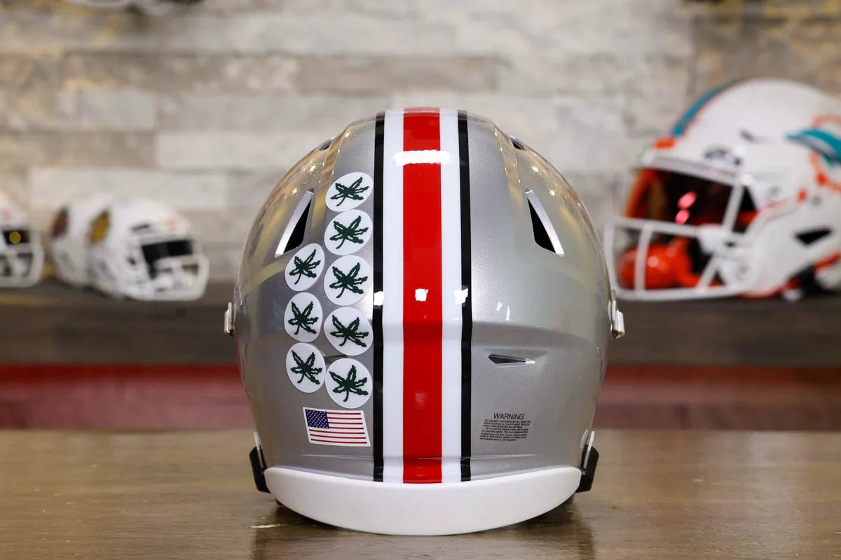 Ohio State Buckeyes SpeedFlex Mid-Size Football Helmet – A must-have collectible for Buckeyes fans and autograph seekers. This officially licensed mid-size helmet features the iconic SpeedFlex shell, SF-2BD-SW face mask, authentic team decals, internal padding, soft-cup chinstrap, and a clear visor. Sized between a replica and a mini helmet, it’s ideal for display, signing events, or gifting. Affordable, detailed, and game-inspired—perfect for any fan cave or collection.