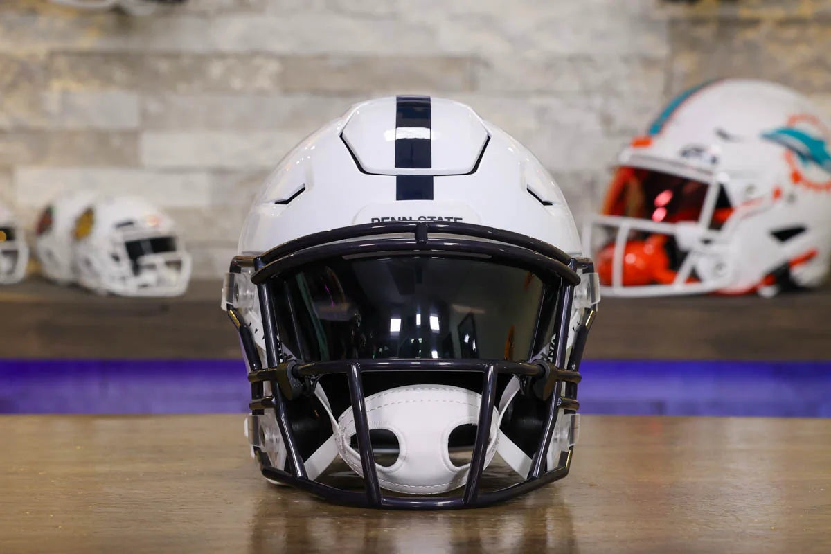 Penn State Nittany Lions SpeedFlex Mid-Size Football Helmet – A must-have collectible for Nittany Lions fans and autograph seekers. This officially licensed mid-size helmet features the iconic SpeedFlex shell, SF-2BD-SW face mask, authentic team decals, internal padding, soft-cup chinstrap, and a clear visor. Sized between a replica and a mini helmet, it’s ideal for display, signing events, or gifting. Affordable, detailed, and game-inspired—perfect for any fan cave or collection.