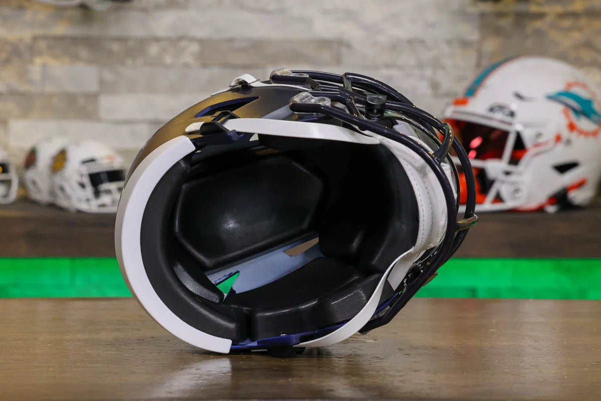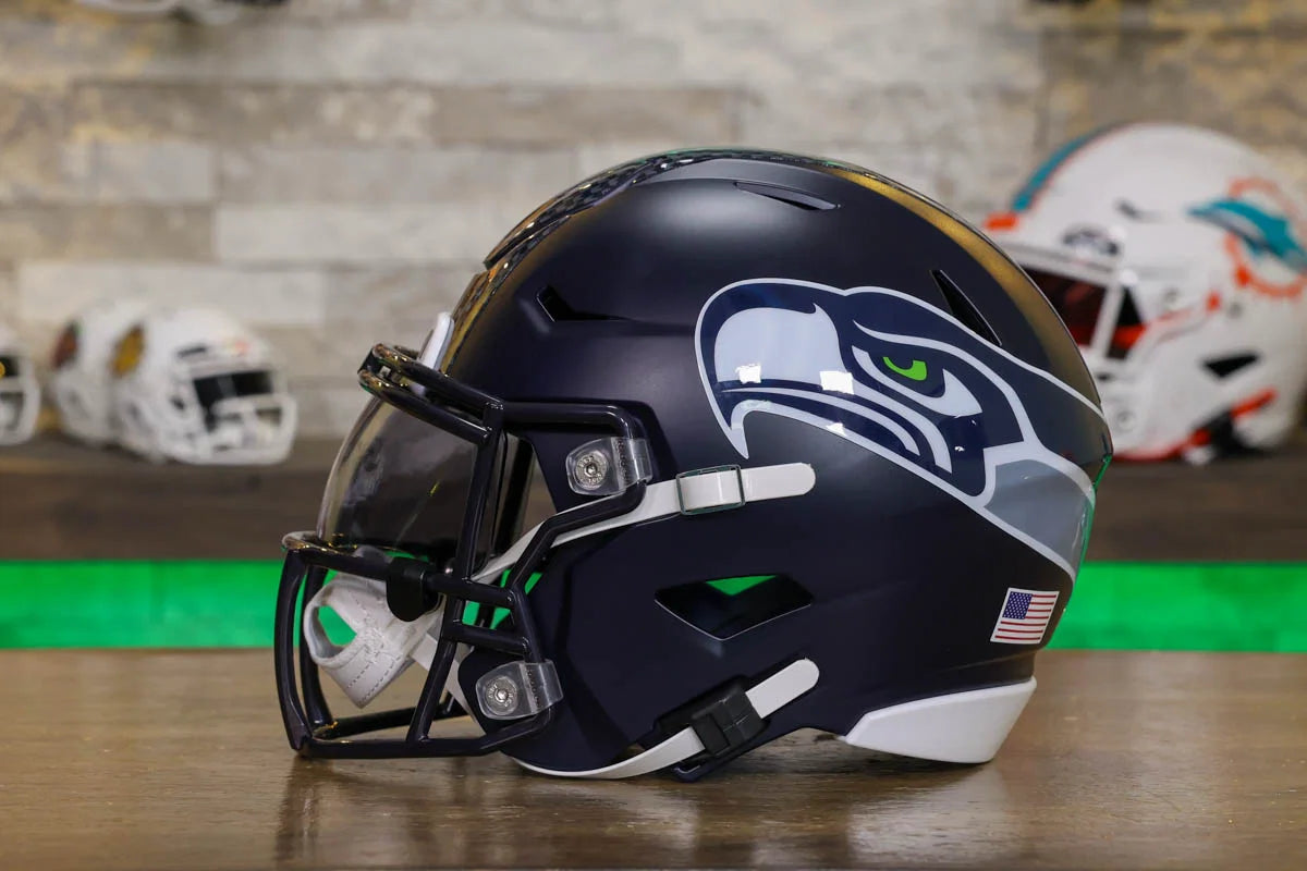 Seattle Seahawks SpeedFlex Mid-Size Football Helmet – A must-have collectible for Seahawks fans and autograph seekers. This officially licensed mid-size helmet features the iconic SpeedFlex shell, SF-2BD-SW face mask, authentic team decals, internal padding, soft-cup chinstrap, and a clear visor. Sized between a replica and a mini helmet, it’s ideal for display, signing events, or gifting. Affordable, detailed, and game-inspired—perfect for any fan cave or collection.