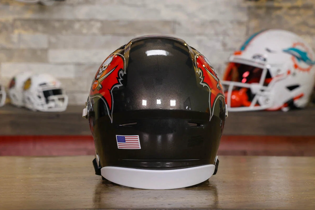Tampa Bay Buccaneers SpeedFlex Mid-Size Football Helmet – A must-have collectible for Buccaneers fans and autograph seekers. This officially licensed mid-size helmet features the iconic SpeedFlex shell, SF-2BD-SW face mask, authentic team decals, internal padding, soft-cup chinstrap, and a clear visor. Sized between a replica and a mini helmet, it’s ideal for display, signing events, or gifting. Affordable, detailed, and game-inspired—perfect for any fan cave or collection.