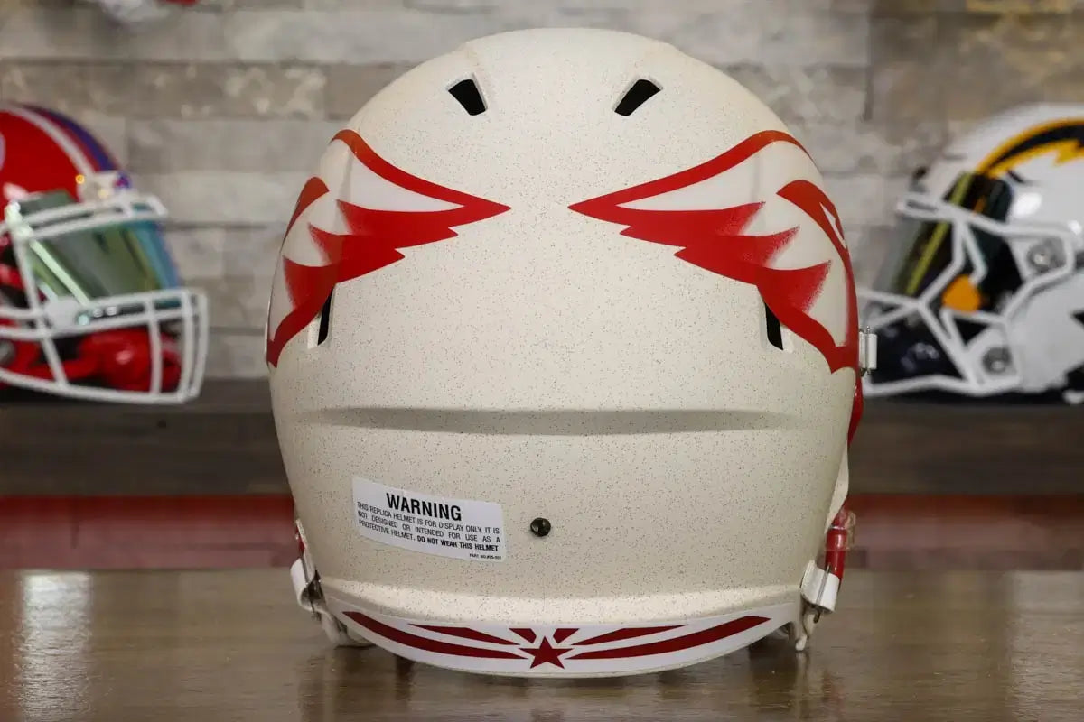 得られるもの: 発売以来、Riddell Speed はあらゆるレベルのプレイヤーにとって最高の選択肢でした。これまでにないアグレッシブなライン、快適なフィット感、そして数多くのアップグレードを備えた Riddell Speed は、プレイヤーやコレクターの間で最も人気のあるヘルメットの 1 つです。高さ約 10 インチのこの公式ライセンス ディスプレイ ヘルメットは、すべてのフットボール ファンに最適で、サインにも最適です。Speed Authentic よりわずかに小さいサイズで、兄貴分と同じ S2BD-SW-SP フェイスマスク、4 ポイント ソフト チンストラップ、公式ペイントとデカールが付属しています。