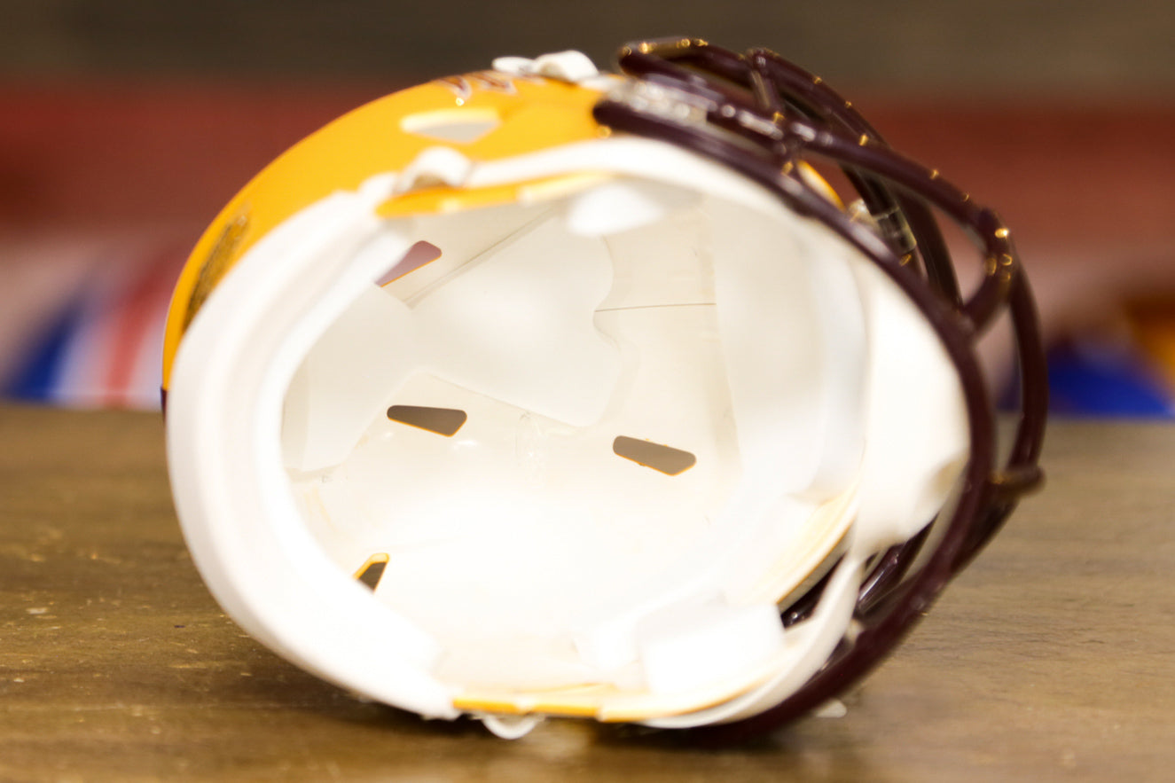 Riddell Speed ミニヘルメットは、コレクタークラブに簡単に参加できる手頃な方法であり、お金をかけずに誰もが喜ぶ完璧なギフトになります。Riddell ミニヘルメットは、本物ヘルメットやレプリカヘルメットの約半分のサイズです。公式チームのデザインと色を小さなスケールで再現しています。高さは約 6 インチで、場所を取らずにチームのミニヘルメットをすべて集めることができます。デスク、棚、ダッシュボードに置いたり、 ミニヘルメットハンガーを購入して壁に掛けたりできます。