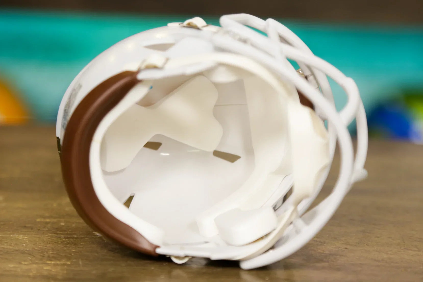 Riddell Speed ミニヘルメットは、コレクタークラブに簡単に参加できる手頃な方法であり、お金をかけずに誰もが喜ぶ完璧なギフトになります。Riddell ミニヘルメットは、本物ヘルメットやレプリカヘルメットの約半分のサイズです。公式チームのデザインと色を小さなスケールで再現しています。高さは約 6 インチで、場所を取らずにチームのミニヘルメットをすべて集めることができます。デスク、棚、ダッシュボードに置いたり、 ミニヘルメットハンガーを購入して壁に掛けたりできます。