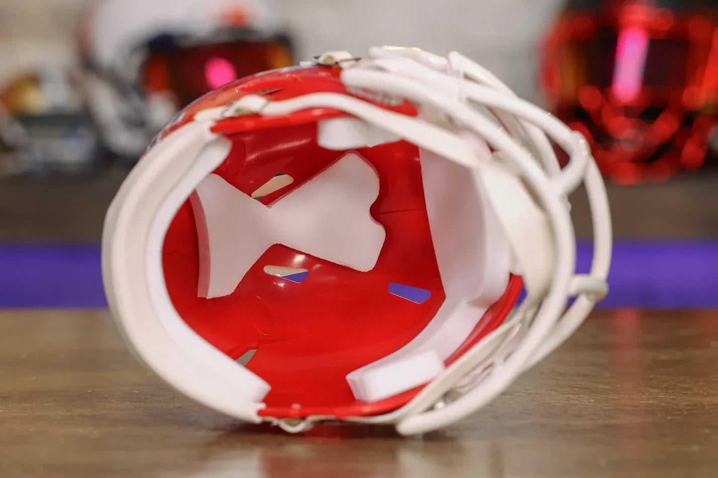 Riddell Speed ミニヘルメットは、コレクタークラブに簡単に参加できる手頃な方法であり、お金をかけずに誰もが喜ぶ完璧なギフトになります。Riddell ミニヘルメットは、本物ヘルメットやレプリカヘルメットの約半分のサイズです。公式チームのデザインと色を小さなスケールで再現しています。高さは約 6 インチで、場所を取らずにチームのミニヘルメットをすべて集めることができます。デスク、棚、ダッシュボードに置いたり、 ミニヘルメットハンガーを購入して壁に掛けたりできます。