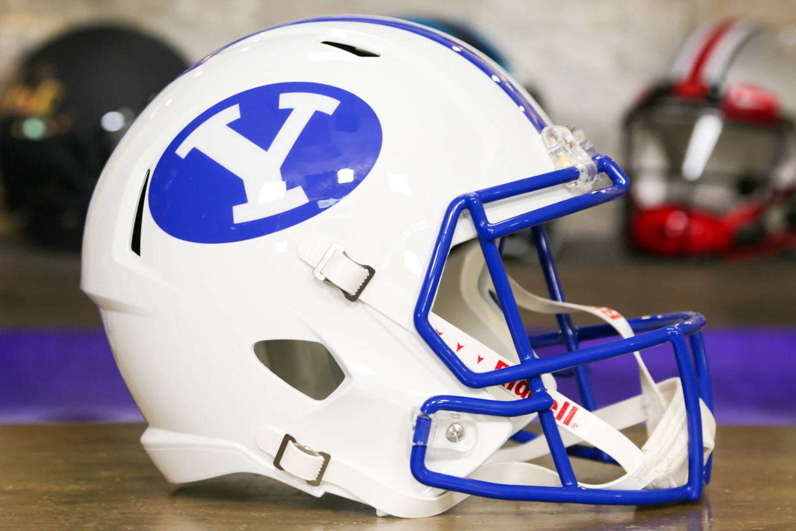 このBYUクーガーズリデルスピード ディスプレイヘルメットは真の Cougs ファン向けです。