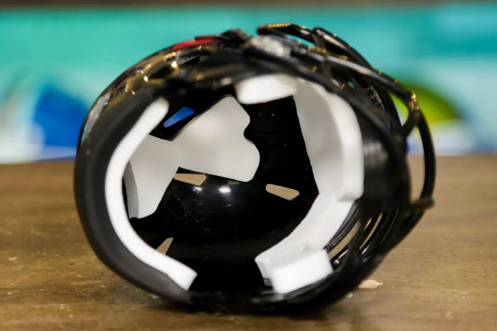 Riddell Speed ミニヘルメットは、コレクタークラブに簡単に参加できる手頃な方法であり、お金をかけずに誰もが喜ぶ完璧なギフトになります。Riddell ミニヘルメットは、本物ヘルメットやレプリカヘルメットの約半分のサイズです。公式チームのデザインと色を小さなスケールで再現しています。高さは約 6 インチで、場所を取らずにチームのミニヘルメットをすべて集めることができます。デスク、棚、ダッシュボードに置いたり、 ミニヘルメットハンガーを購入して壁に掛けたりできます。