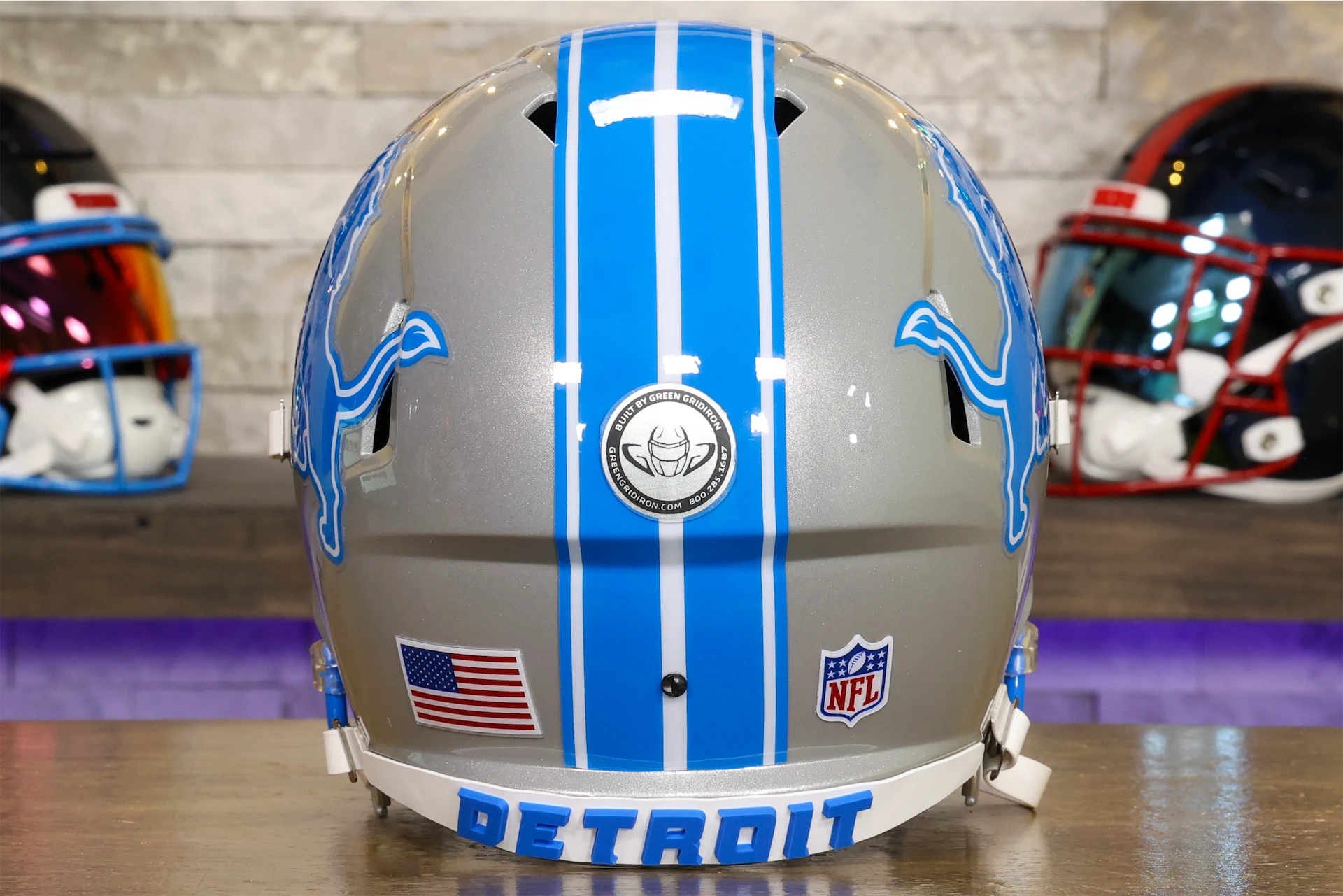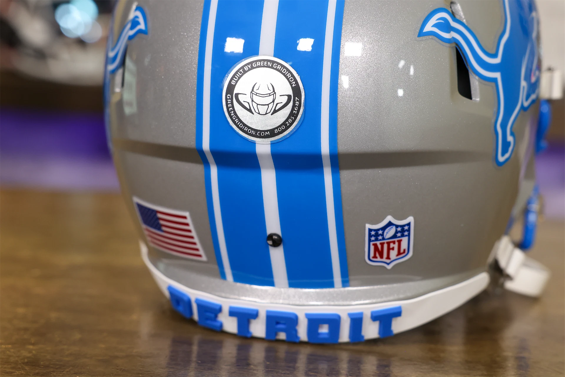 This Detroit Lions Helmet is a Green Gridiron masterpiece, ready for the biggest Lions fan!