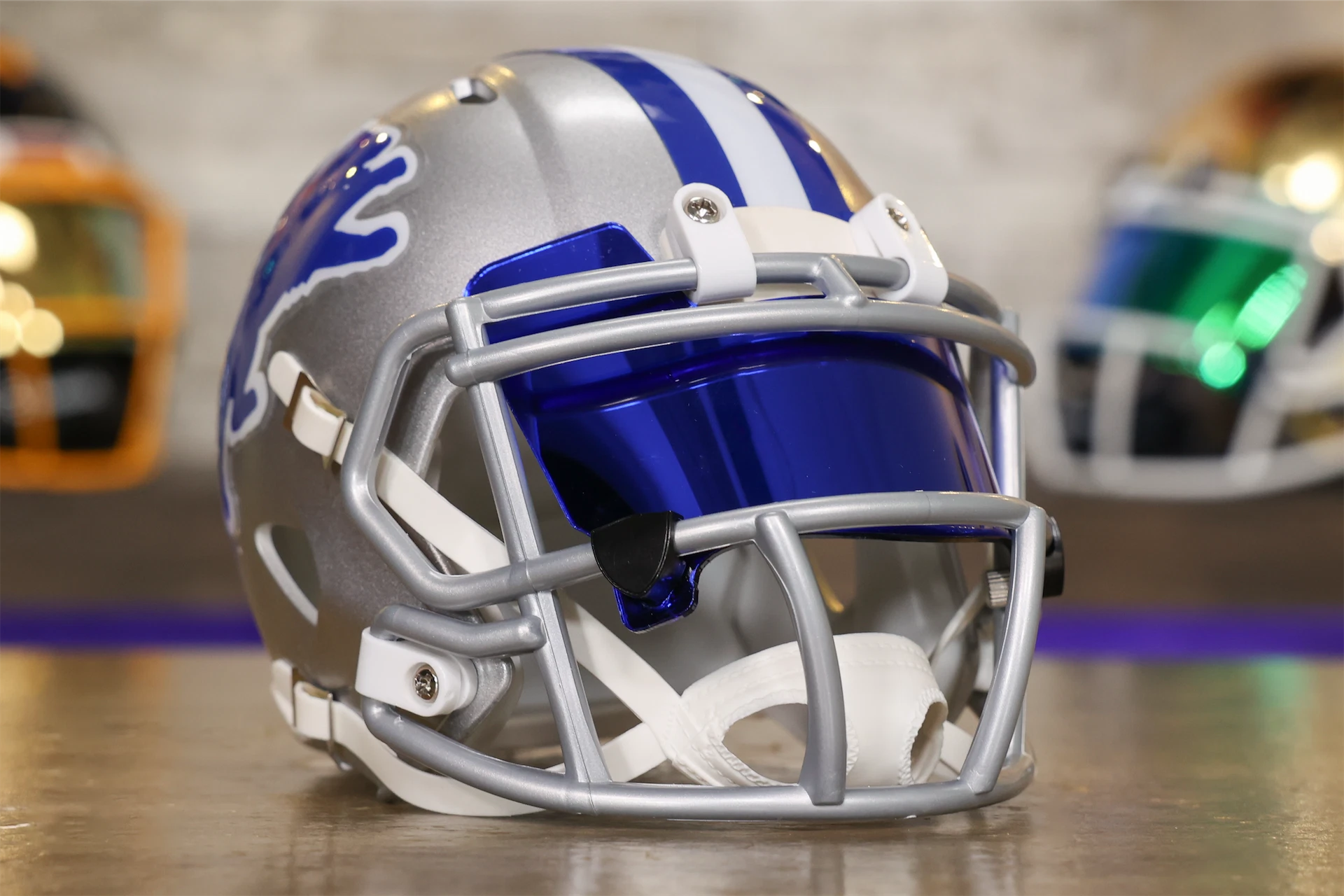 このデトロイト ライオンズミニ ヘルメットは、グリーン グリッドアイアンの傑作で、ライオンズの熱烈なファンに最適です。