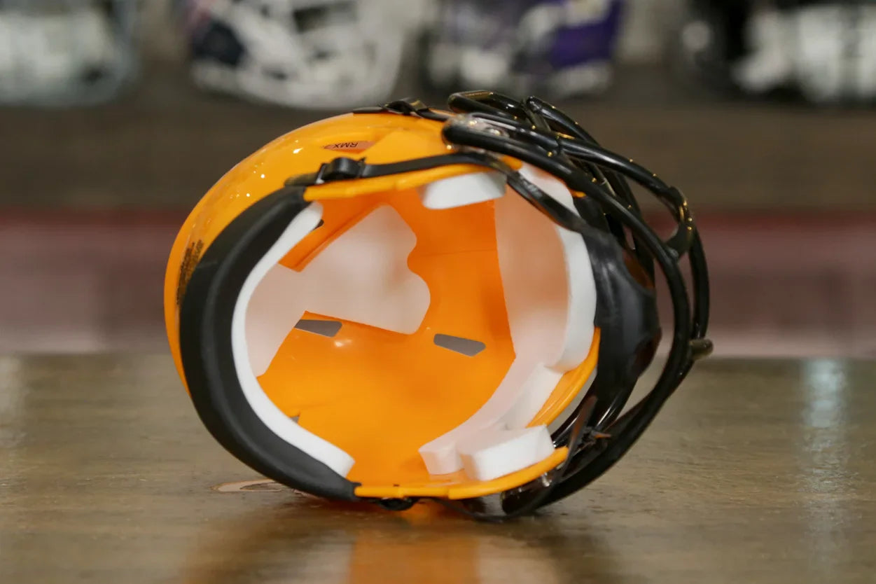 Riddell Speed ミニヘルメットは、コレクタークラブに簡単に参加できる手頃な方法であり、お金をかけずに誰もが喜ぶ完璧なギフトになります。Riddell ミニヘルメットは、本物ヘルメットやレプリカヘルメットの約半分のサイズです。公式チームのデザインと色を小さなスケールで再現しています。高さは約 6 インチで、場所を取らずにチームのミニヘルメットをすべて集めることができます。デスク、棚、ダッシュボードに置いたり、 ミニヘルメットハンガーを購入して壁に掛けたりできます。