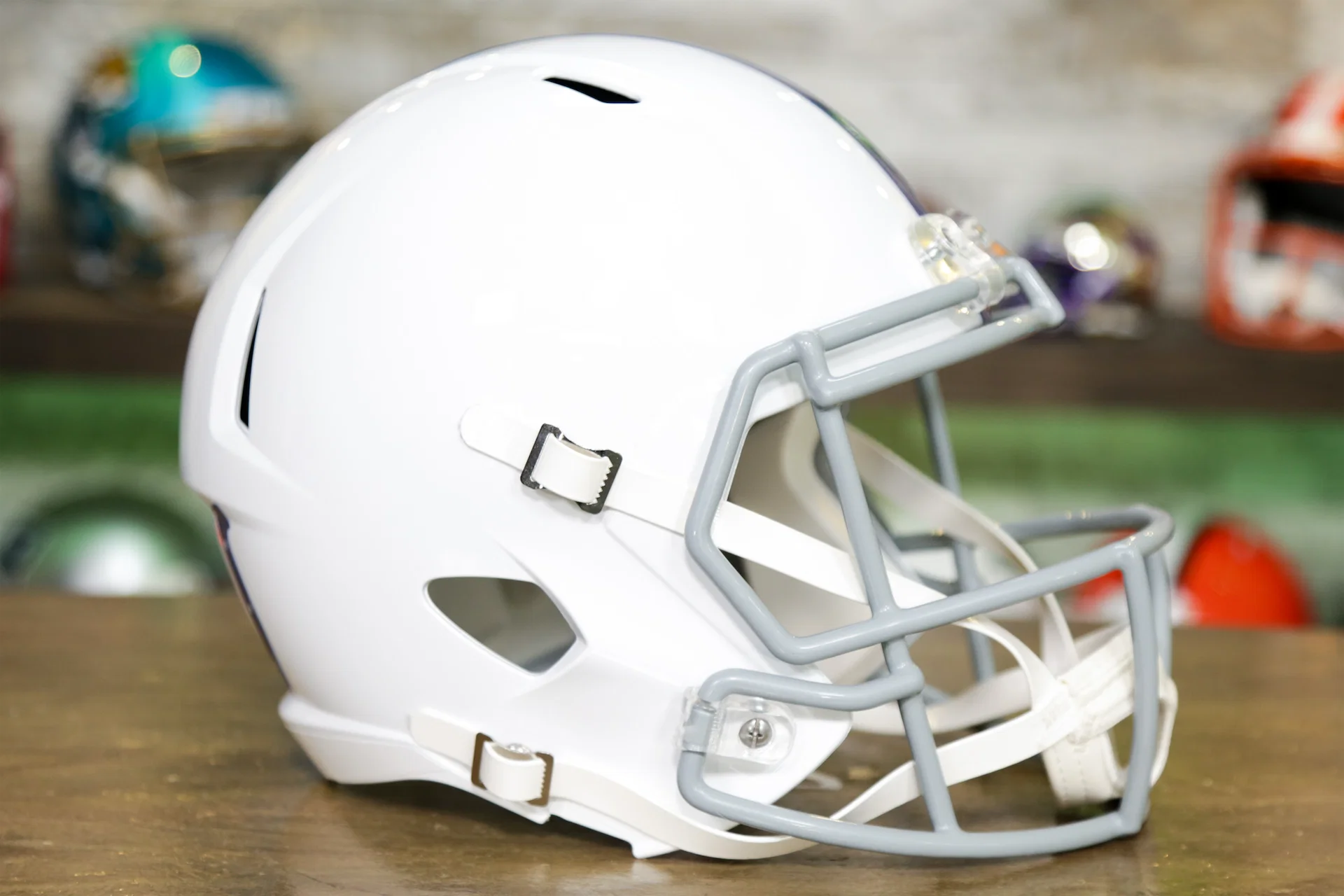 Riddell Speed ヘルメットは、歴史上最も人気があり象徴的なスタイルの 1 つであり、コレクターの間で最も求められているヘルメットの 1 つです。公式ライセンスを受けたこれらのヘルメットは、ディスプレイ、サイン収集、チーム スピリットの披露に最適です。当社や多くのチームが行っているように、 ヘルメット ハンガーを使用して、ヘルメットを棚や壁に目立つようにディスプレイすることをお勧めします。フェイスマスクに提供している 35 色以上からお選びいただけます。各ハンガーは注文に応じてコーティングされます。