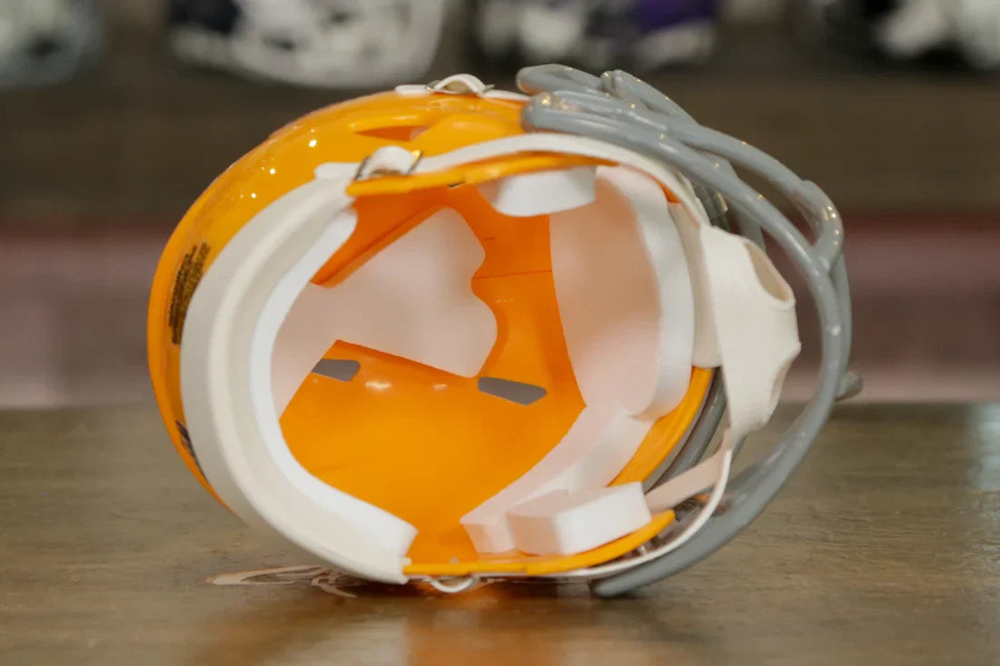Riddell Speed ミニヘルメットは、コレクタークラブに簡単に参加できる手頃な方法であり、お金をかけずに誰もが喜ぶ完璧なギフトになります。Riddell ミニヘルメットは、本物ヘルメットやレプリカヘルメットの約半分のサイズです。公式チームのデザインと色を小さなスケールで再現しています。高さは約 6 インチで、場所を取らずにチームのミニヘルメットをすべて集めることができます。デスク、棚、ダッシュボードに置いたり、 ミニヘルメットハンガーを購入して壁に掛けたりできます。
