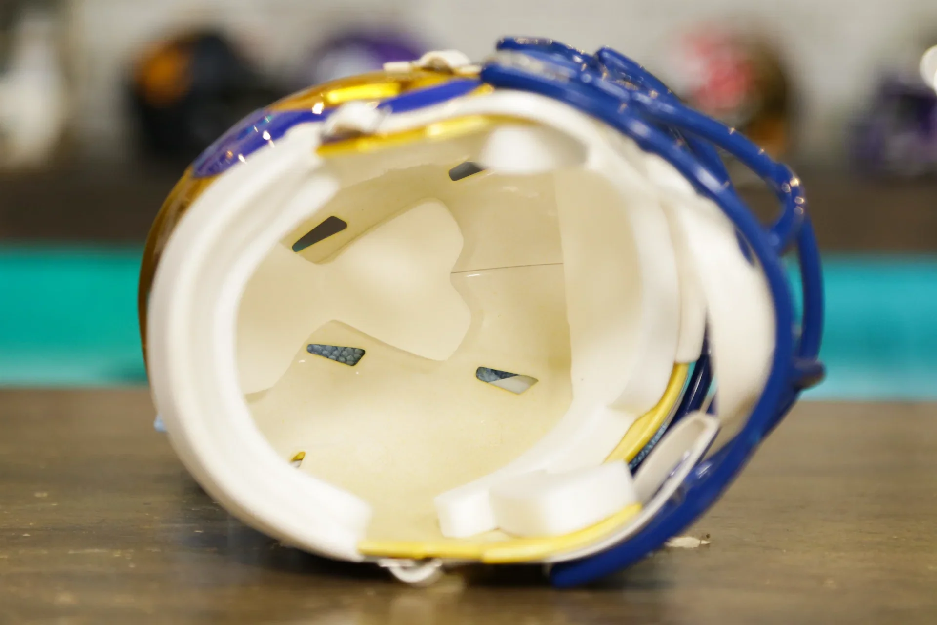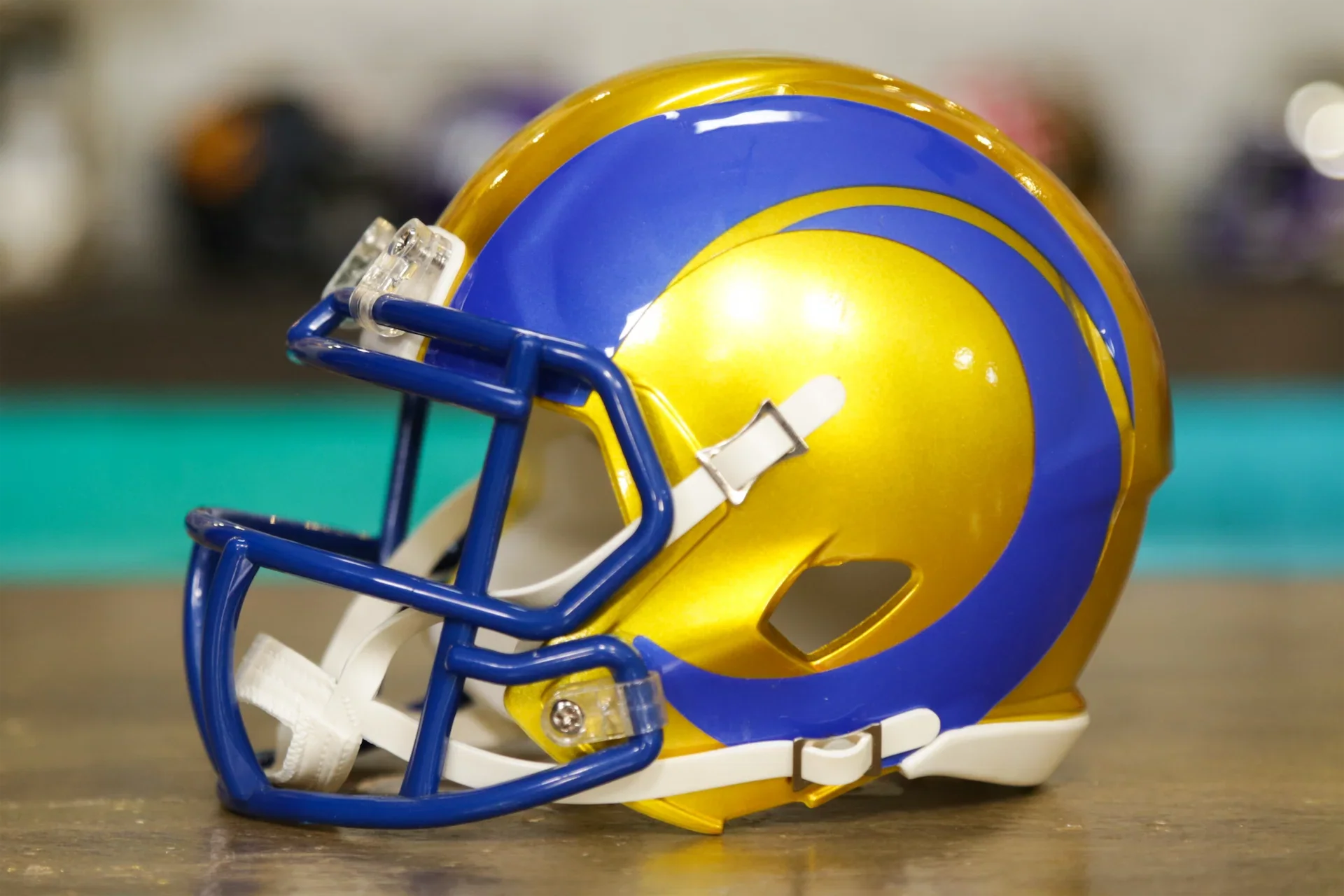 ロサンゼルス ラムズリデル スピード ミニ ヘルメットは、真のラムズ ファンのために作られました。
