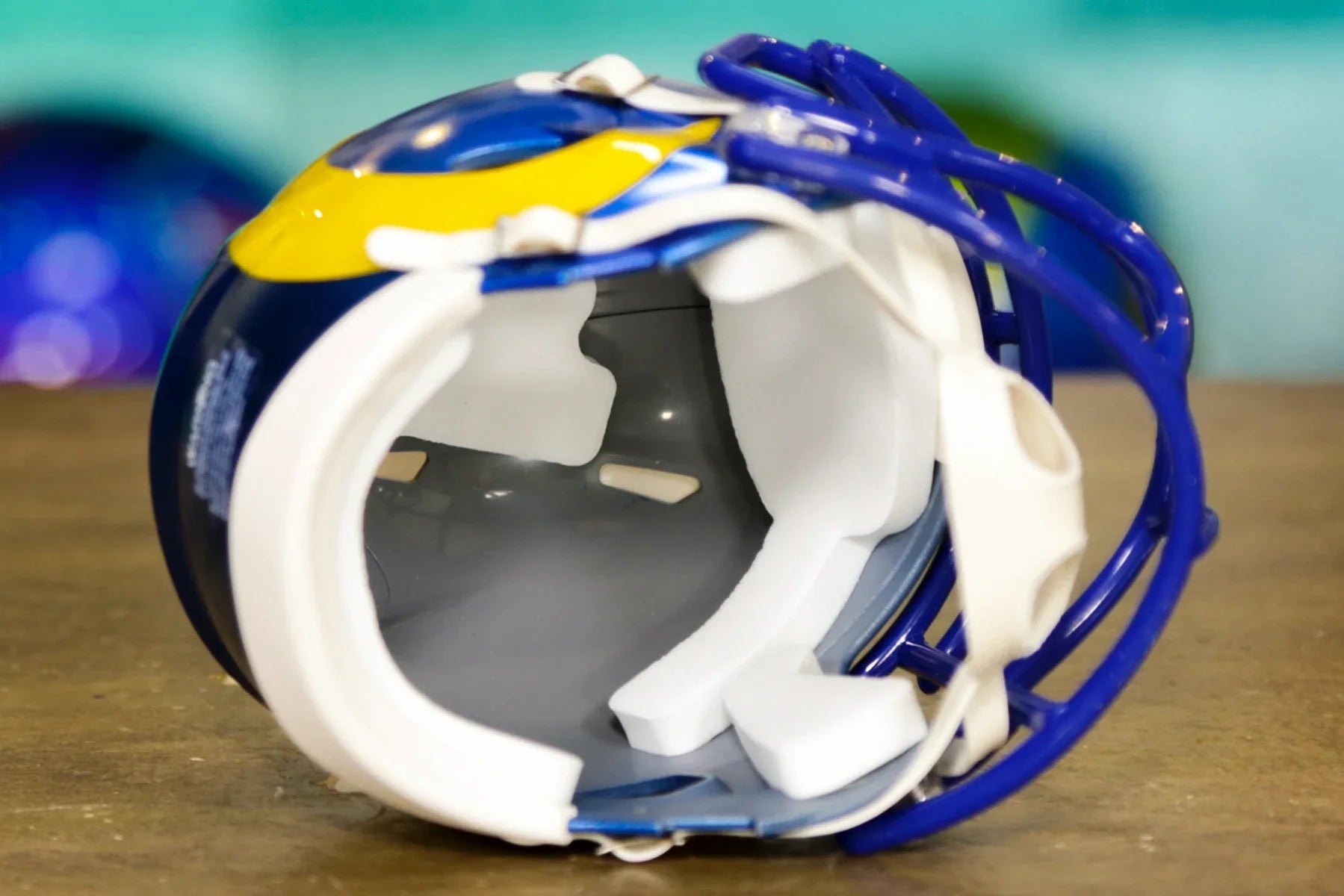ロサンゼルス ラムズリデル スピード ミニ ヘルメットは、真のラムズ ファンのために作られました。