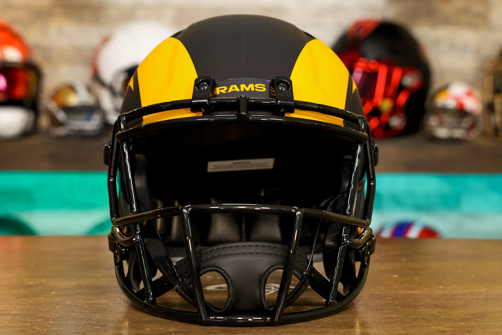 これらのロサンゼルス ラムズ リデル スピード レプリカ エクリプス ヘルメットは、真のラムズ ファンのために作られており、期間限定で販売されます。すべてのエクリプス シリーズ ヘルメットは、ウルトラフラット ブラック ペイントと、ヘルメットから放射状に広がるモノクロのチーム デカールが特徴です。黒いフェイスマスク クリップ、あごひも、バックル、バンパー、パッド、ネジが、完全にブラックアウトした不気味な外観を完成させます。