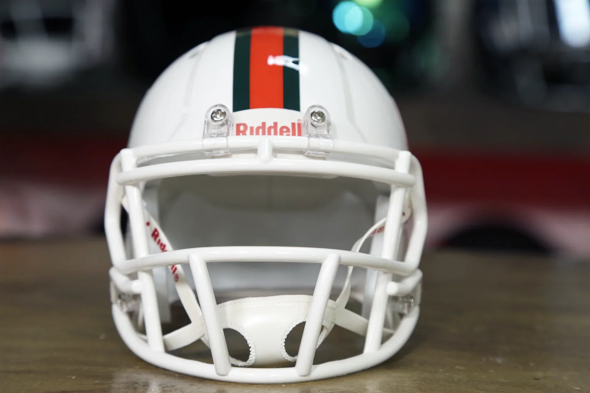 マイアミ ハリケーンズのRiddell Speed ミニ ヘルメットは、真のハリケーンズ ファンのために作られました。