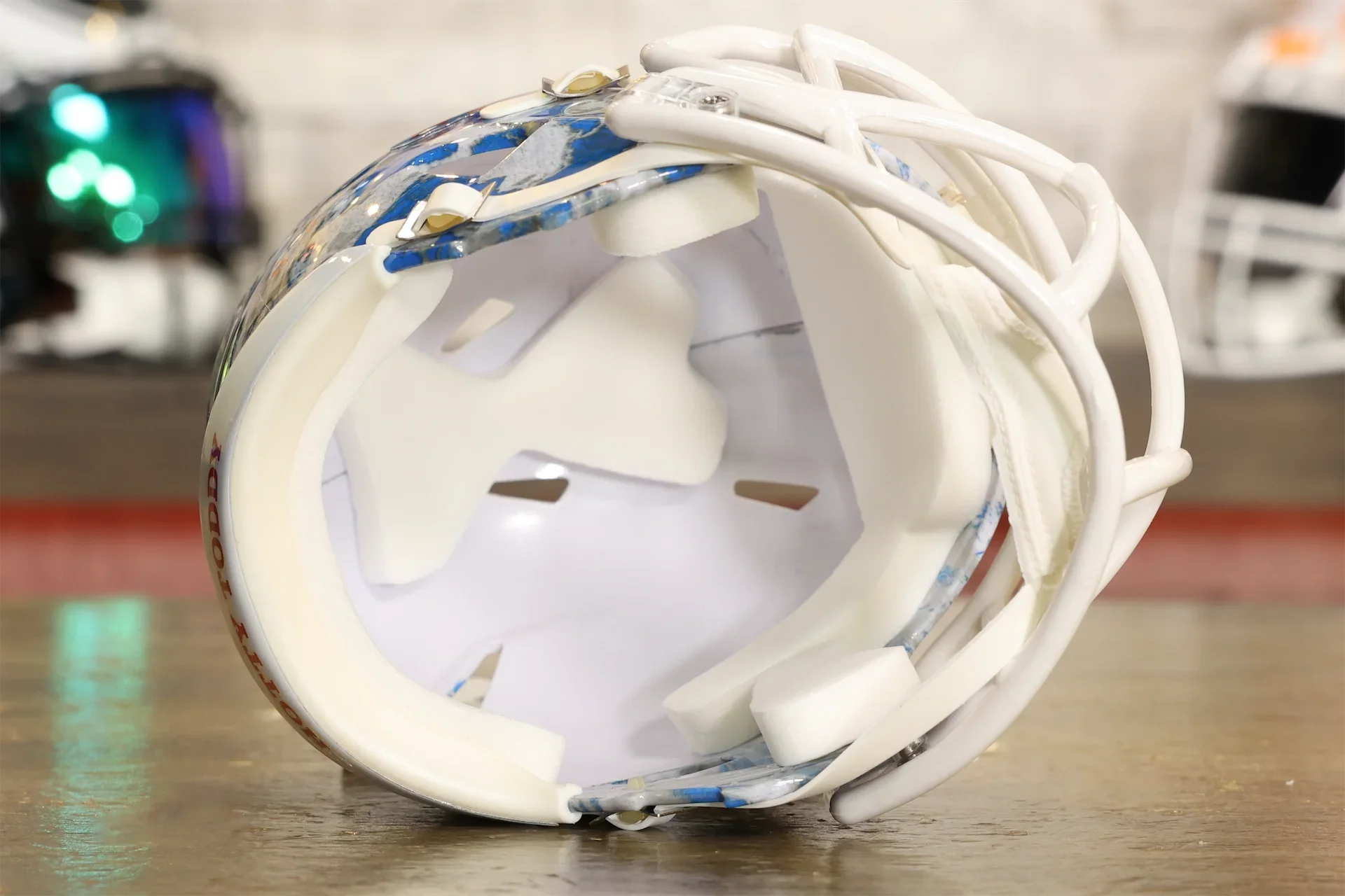 Riddell Speed ミニヘルメットは、コレクタークラブに簡単に参加できる手頃な方法であり、お金をかけずに誰もが喜ぶ完璧なギフトになります。Riddell ミニヘルメットは、本物ヘルメットやレプリカヘルメットの約半分のサイズです。公式チームのデザインと色を小さなスケールで再現しています。高さは約 6 インチで、場所を取らずにチームのミニヘルメットをすべて集めることができます。デスク、棚、ダッシュボードに置いたり、 ミニヘルメットハンガーを購入して壁に掛けたりできます。