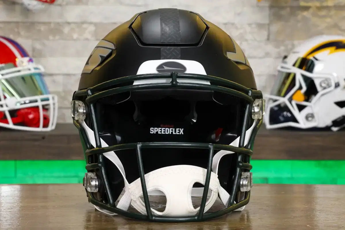 Riddell SpeedFlex ヘルメットは、歴史上最も人気があり象徴的なスタイルの 1 つであり、プレーヤーやコレクターに最も求められているヘルメットの 1 つです。公式ライセンスを受けたこれらのヘルメットは、ディスプレイ、サイン収集、チーム スピリットの披露に最適です。当社や多くのチームが行っているように、 ヘルメット ハンガーを使用して、ヘルメットを棚や壁に目立つようにディスプレイすることをお勧めします。フェイスマスクに提供している 35 色以上からお選びいただけます。各ハンガーは注文に応じてコーティングされます。