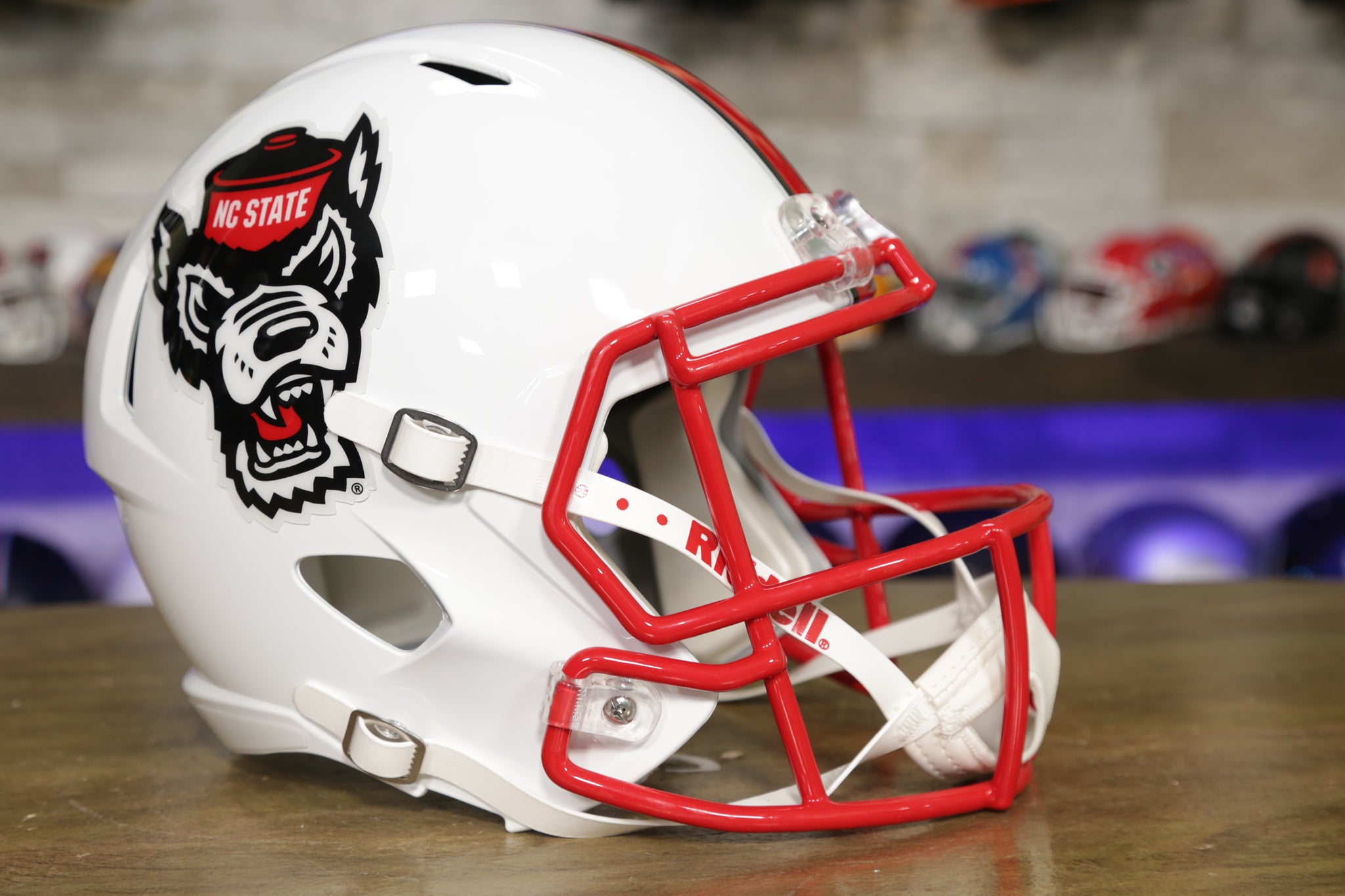 このノースカロライナ州立大学ウルフパックのリデル スピード レプリカ ヘルメットは、真のタフィー ファンのためのものです。