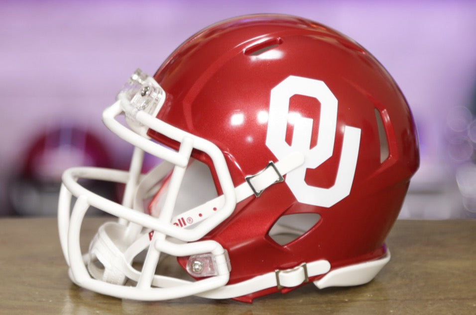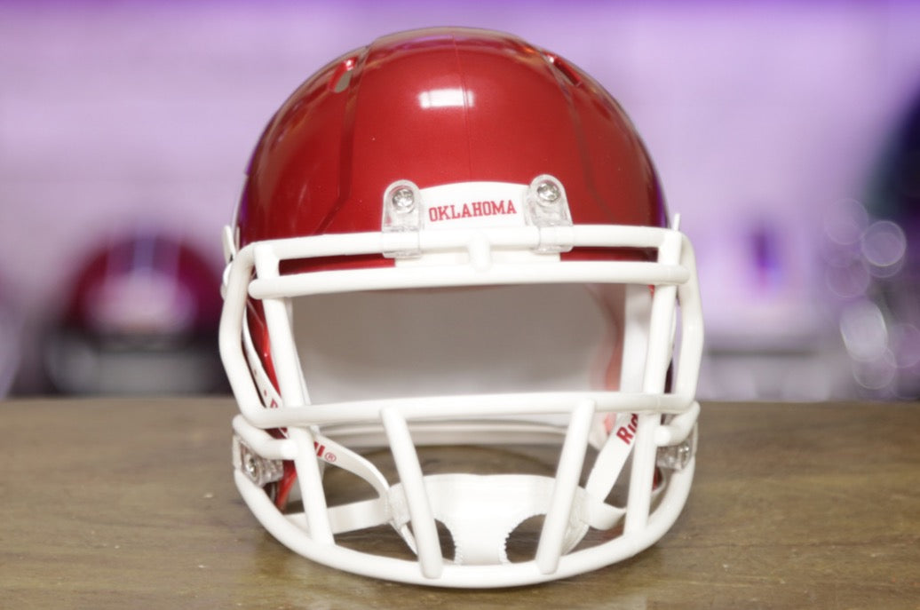 オクラホマ スーナーズリデル スピード ミニ ヘルメットは、真のスーナーズ ファンのために作られました。