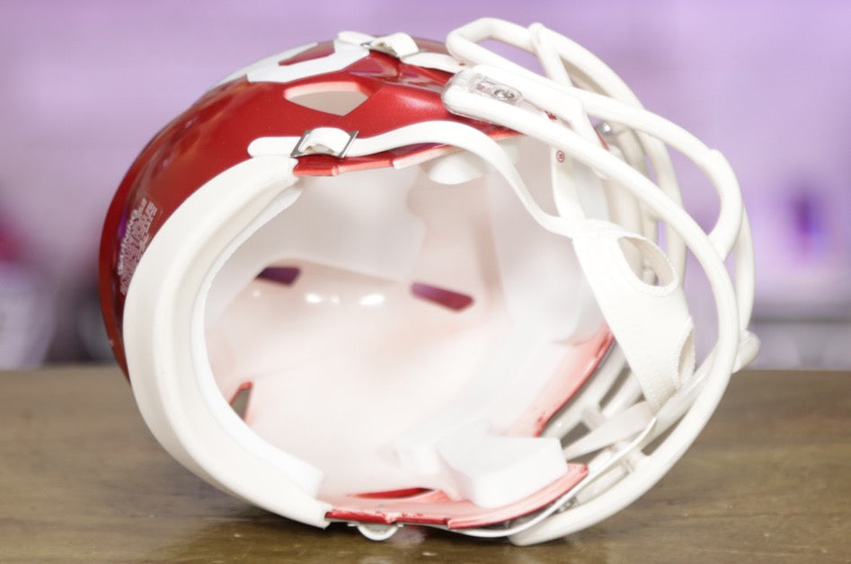 Riddell Speed ミニヘルメットは、コレクタークラブに簡単に参加できる手頃な方法であり、お金をかけずに誰もが喜ぶ完璧なギフトになります。Riddell ミニヘルメットは、本物ヘルメットやレプリカヘルメットの約半分のサイズです。公式チームのデザインと色を小さなスケールで再現しています。高さは約 6 インチで、場所を取らずにチームのミニヘルメットをすべて集めることができます。デスク、棚、ダッシュボードに置いたり、 ミニヘルメットハンガーを購入して壁に掛けたりできます。