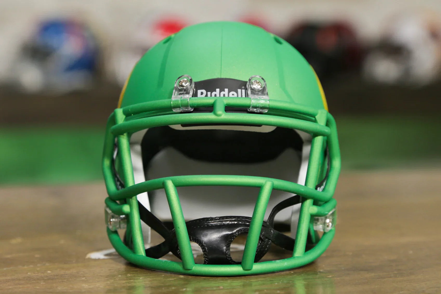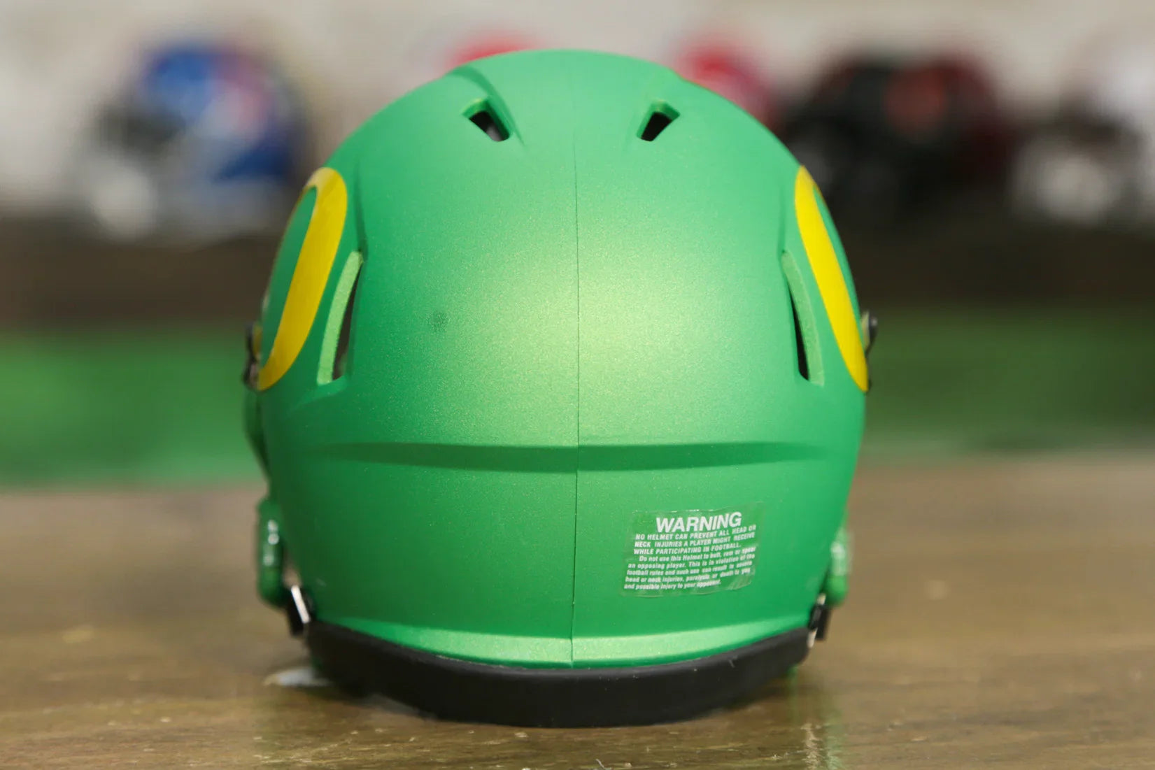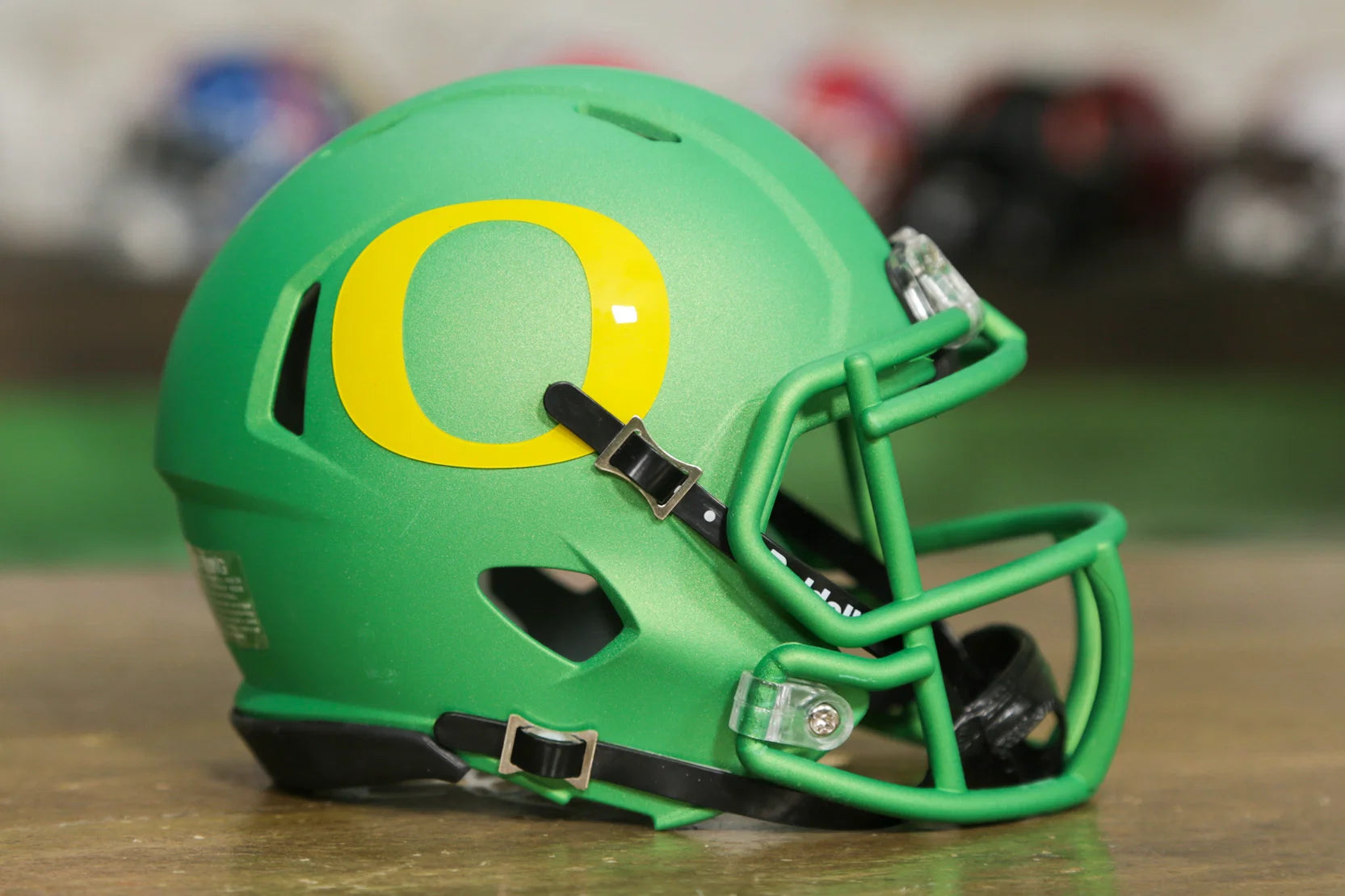 オレゴン ダックスの Riddell Speed ミニ ヘルメットは、 真のダックス ファンのために作られました。 Riddell Speed ミニヘルメットは、コレクタークラブに簡単に参加できる手頃な方法であり、お金をかけずに誰もが喜ぶ完璧なギフトになります。Riddell ミニヘルメットは、本物ヘルメットやレプリカヘルメットの約半分のサイズです。公式チームのデザインと色を小さなスケールで再現しています。高さは約 6 インチで、場所を取らずにチームのミニヘルメットをすべて集めることができます。デスク、棚、ダッシュボードに置いたり、 ミニヘルメットハンガーを 購入し