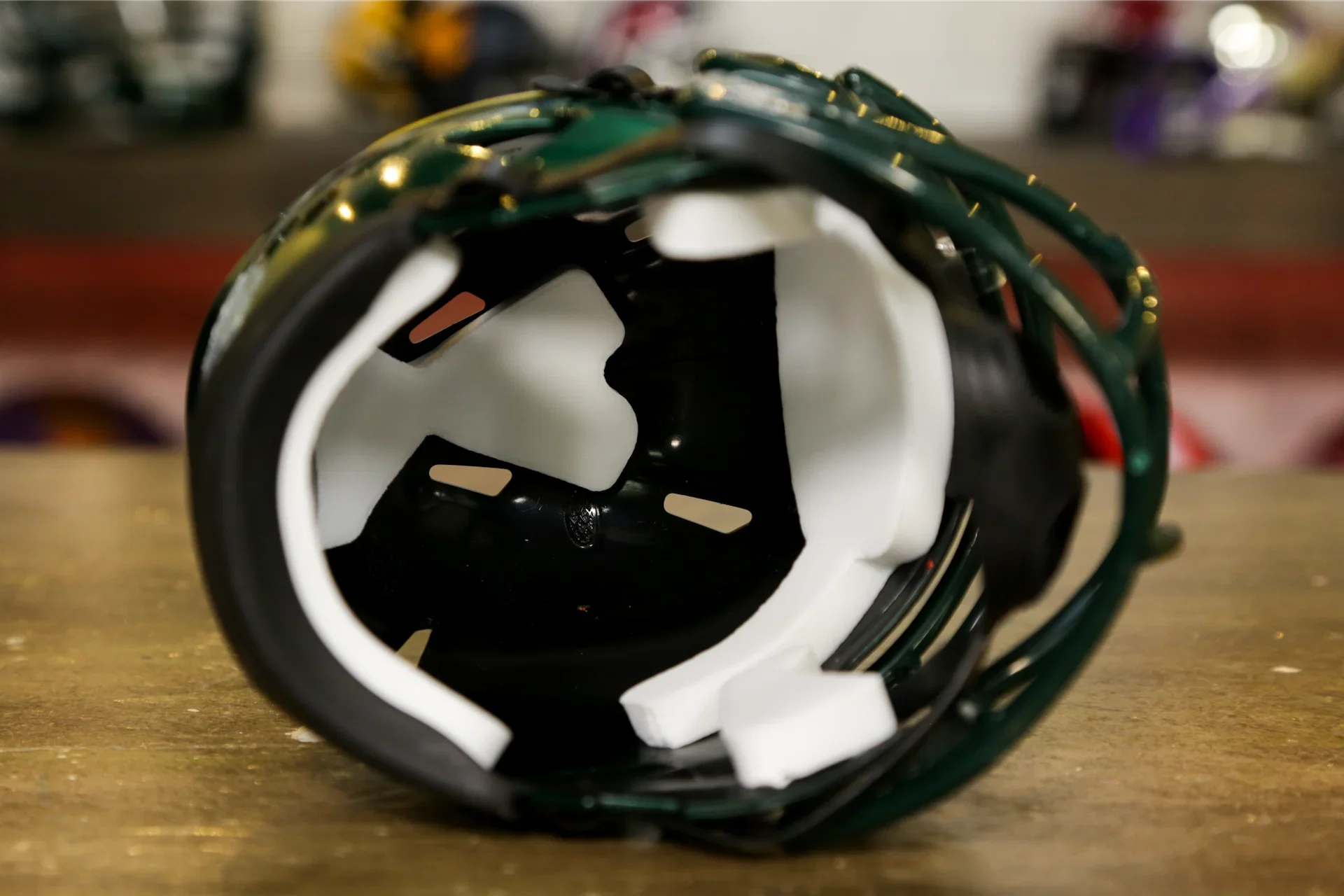Riddell Speed ミニヘルメットは、コレクタークラブに簡単に参加できる手頃な方法であり、お金をかけずに誰もが喜ぶ完璧なギフトになります。Riddell ミニヘルメットは、本物ヘルメットやレプリカヘルメットの約半分のサイズです。公式チームのデザインと色を小さなスケールで再現しています。高さは約 6 インチで、場所を取らずにチームのミニヘルメットをすべて集めることができます。デスク、棚、ダッシュボードに置いたり、 ミニヘルメットハンガーを購入して壁に掛けたりできます。