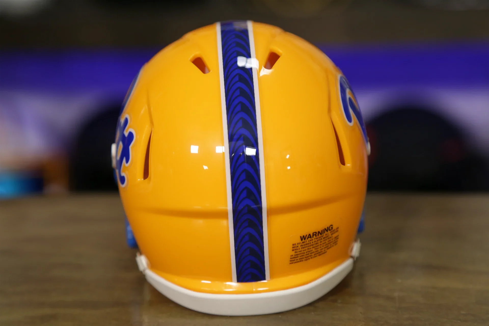 Pitt Panthers Riddell Speed ミニ ヘルメット は、真の Panthers ファンのために作られました。 Riddell Speed ミニヘルメットは、コレクタークラブに簡単に参加できる手頃な方法であり、お金をかけずに誰もが喜ぶ完璧なギフトになります。Riddell ミニヘルメットは、本物ヘルメットやレプリカヘルメットの約半分のサイズです。公式チームのデザインと色を小さなスケールで再現しています。高さは約 6 インチで、場所を取らずにチームのミニヘルメットをすべて集めることができます。デスク、棚、ダッシュボードに置いたり、 ミニヘルメットハンガーを 購入し