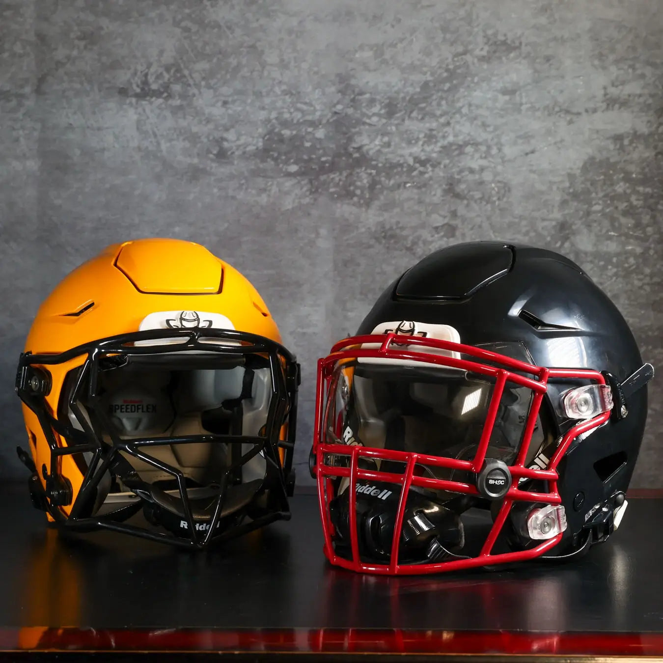 Riddell SpeedFlex フットボール ヘルメットは、これまでで最も期待されていたフットボール ヘルメットの 1 つです。そのデザインとテクノロジーは、フットボール ヘルメットの見方を変えるでしょう。ヘルメットの前面に柔軟なパネルが追加され、プレーヤーの頭部への衝撃が軽減されました。また、Cam-Loc チンストラップのオプションも用意されています。Riddell SpeedFlex フットボール ヘルメットは、フットボール ヘルメット テクノロジーの未来への一歩です。