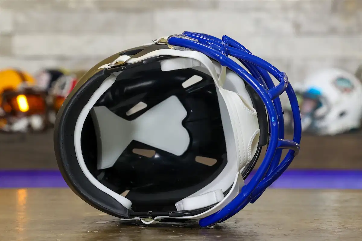 Riddell Speed ヘルメットは、歴史上最も人気があり象徴的なスタイルの 1 つであり、コレクターの間で最も求められているヘルメットの 1 つです。公式ライセンスを受けたこれらのヘルメットは、ディスプレイ、サイン収集、チーム スピリットの披露に最適です。当社や多くのチームが行っているように、 ヘルメット ハンガーを使用して、ヘルメットを棚や壁に目立つようにディスプレイすることをお勧めします。フェイスマスクに提供している 35 色以上からお選びいただけます。各ハンガーは注文に応じてコーティングされます。