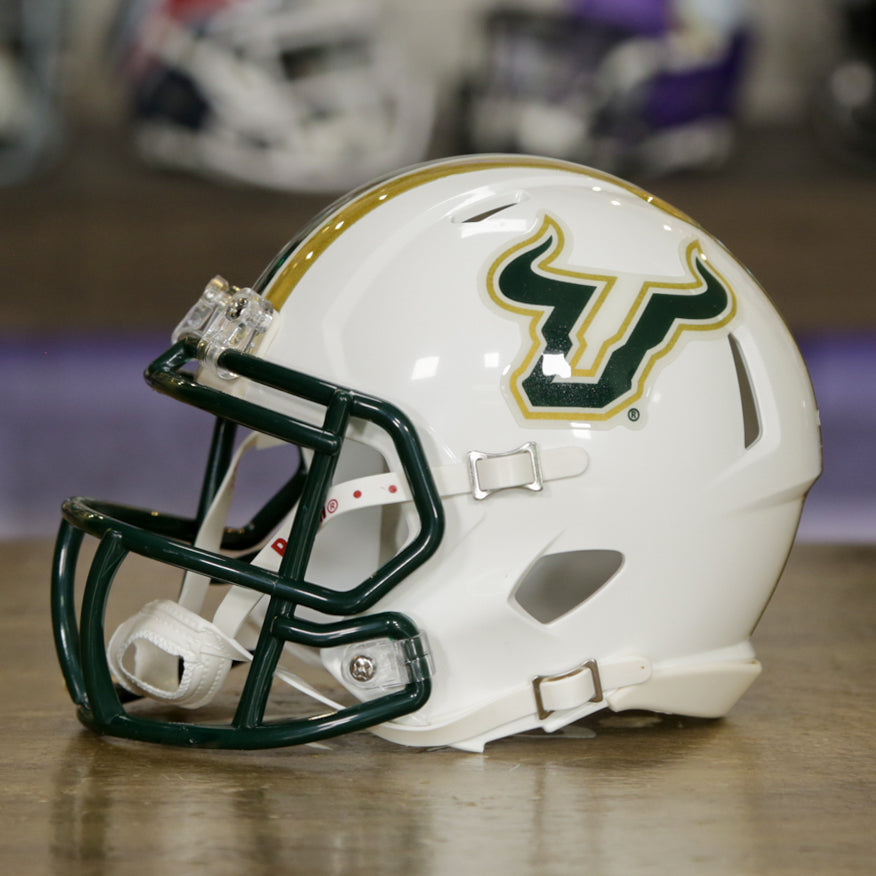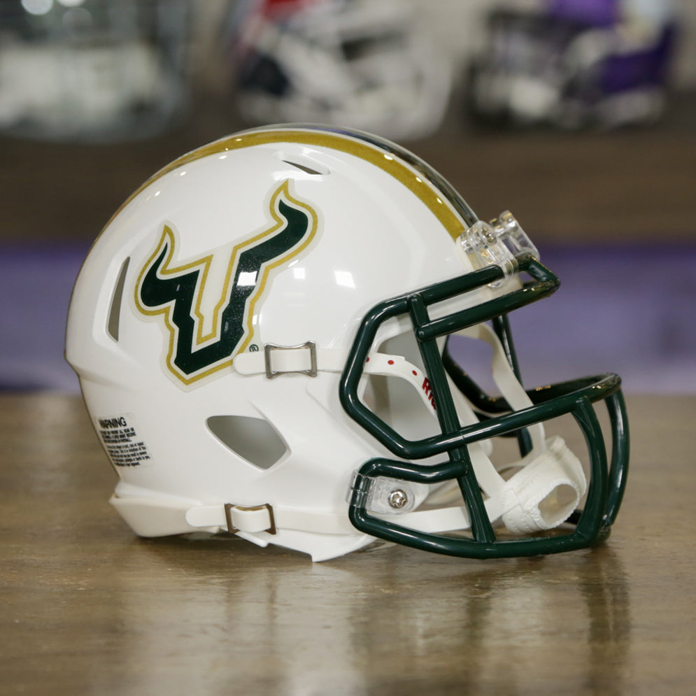 サウスフロリダ ブルズのホワイトリデル スピード ミニ ヘルメットは、真のブルズ ファンのために作られました。