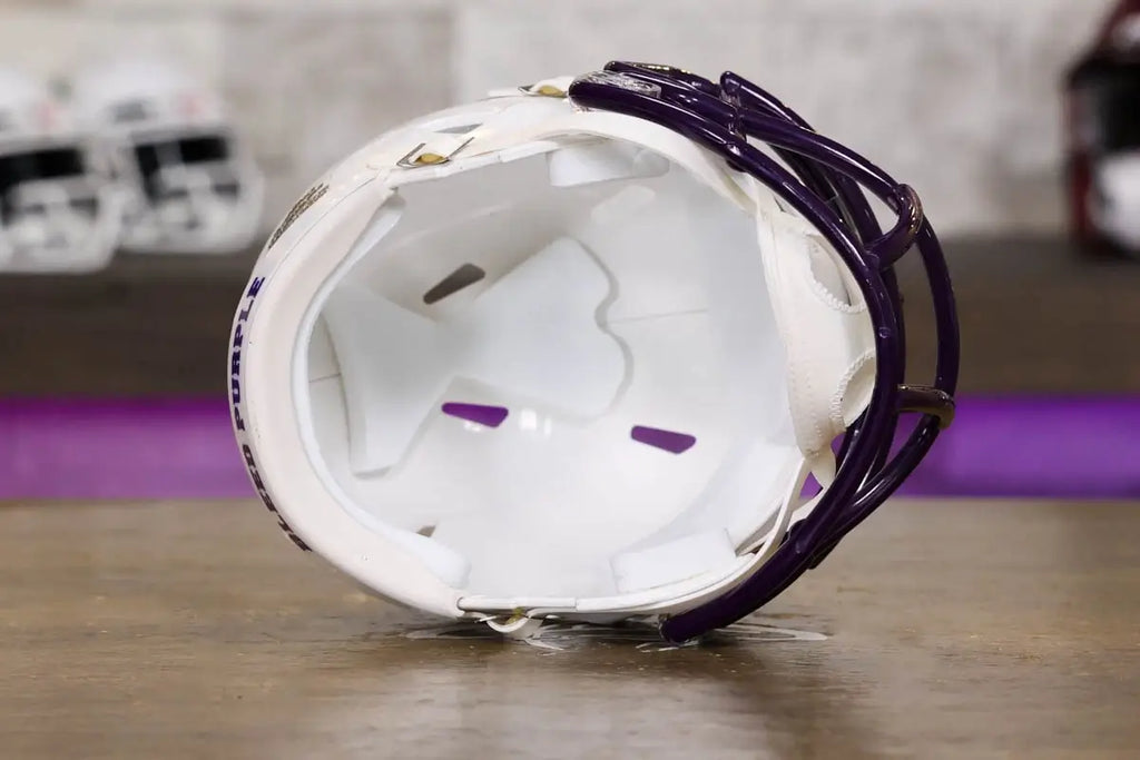 Mini Helmets are an easy and affordable way to join the collectors club and they make a perfect gift that everyone loves without breaking the bank! Mini helmets are about half the size of the Authentic and Replica helmets. They model the official team designs and colors on a smaller scale. Coming in at about 6” tall, you can collect all your teams’ mini’s without taking up much room. Put them on your desk, a shelf, your dashboard, or get a Mini Helmet Hanger and put them on the wall!