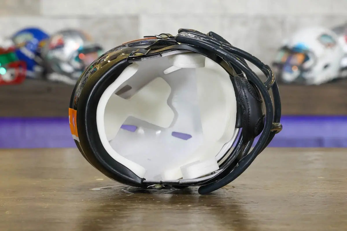 Riddell Speed ミニヘルメットは、コレクタークラブに簡単に参加できる手頃な方法であり、お金をかけずに誰もが喜ぶ完璧なギフトになります。Riddell ミニヘルメットは、本物ヘルメットやレプリカヘルメットの約半分のサイズです。公式チームのデザインと色を小さなスケールで再現しています。高さは約 6 インチで、場所を取らずにチームのミニヘルメットをすべて集めることができます。デスク、棚、ダッシュボードに置いたり、 ミニヘルメットハンガーを購入して壁に掛けたりできます。