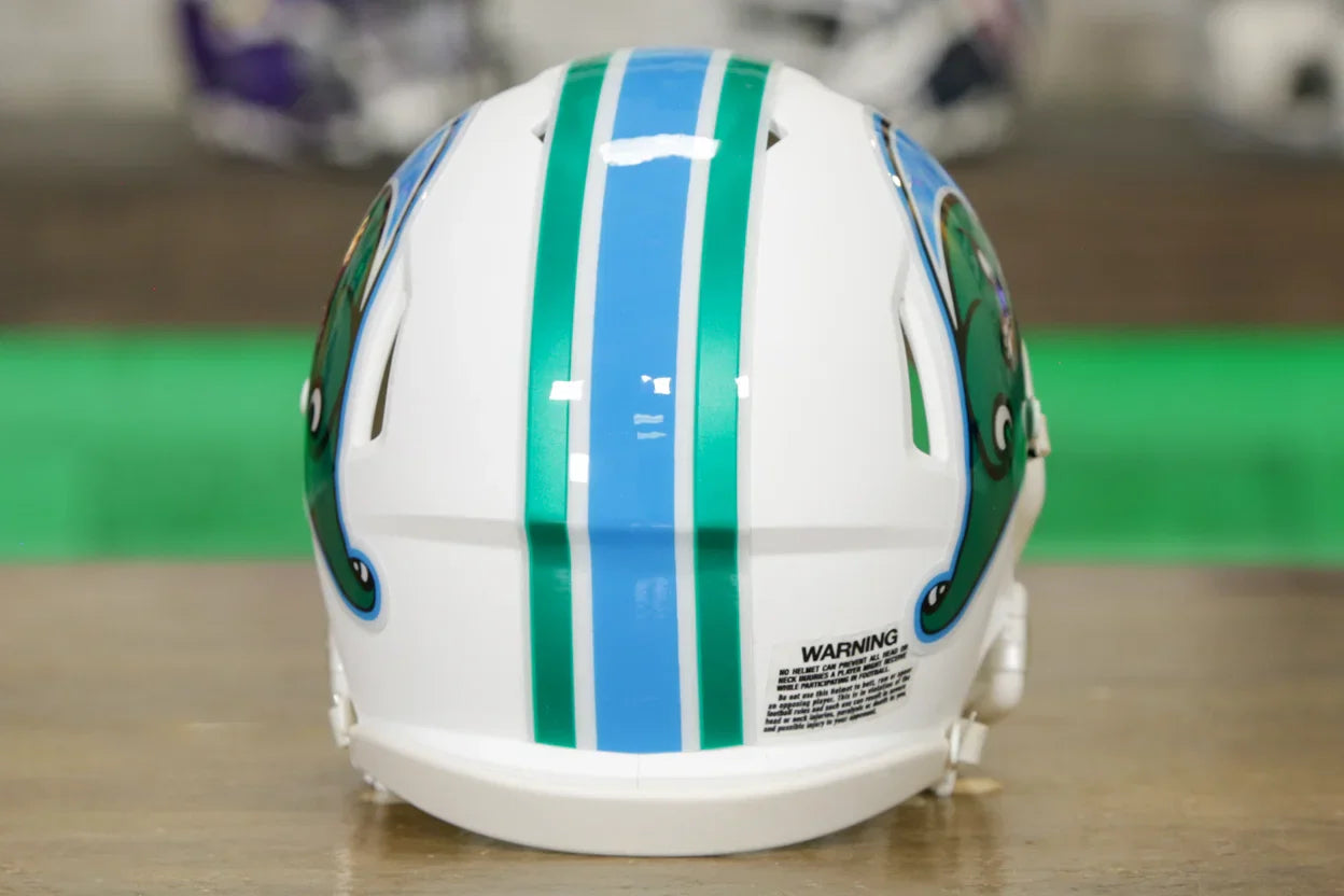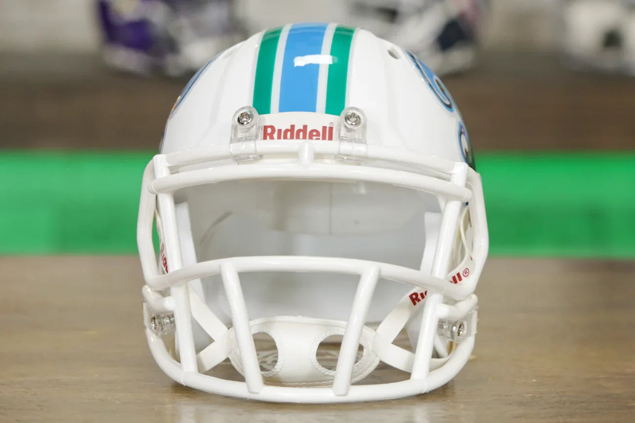 Tulane Green Wave Riddell Speed Mini ヘルメット - Angry Wave は、 真の Green Wave ファンのために作られました。 Riddell Speed ミニヘルメットは、コレクタークラブに簡単に参加できる手頃な方法であり、お金をかけずに誰もが喜ぶ完璧なギフトになります。Riddell ミニヘルメットは、本物ヘルメットやレプリカヘルメットの約半分のサイズです。公式チームのデザインと色を小さなスケールで再現しています。高さは約 6 インチで、場所を取らずにチームのミニヘルメットをすべて集めることができます。デスク、棚、ダッシュボードに置いたり、 ミニヘルメットハンガーを 購入し