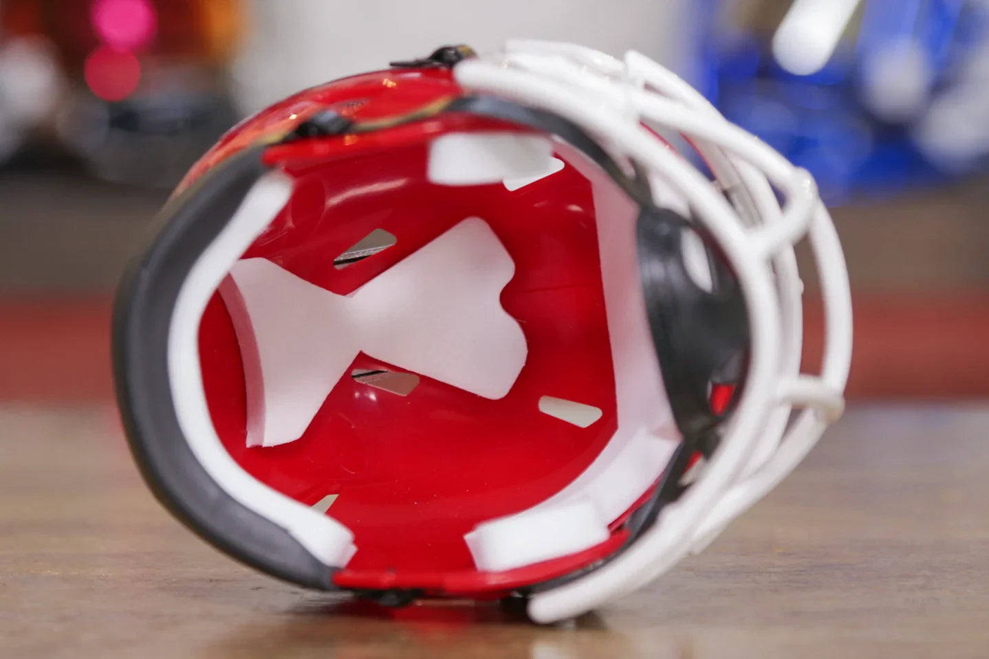 Riddell Speed ミニヘルメットは、コレクタークラブに簡単に参加できる手頃な方法であり、お金をかけずに誰もが喜ぶ完璧なギフトになります。Riddell ミニヘルメットは、本物ヘルメットやレプリカヘルメットの約半分のサイズです。公式チームのデザインと色を小さなスケールで再現しています。高さは約 6 インチで、場所を取らずにチームのミニヘルメットをすべて集めることができます。デスク、棚、ダッシュボードに置いたり、 ミニヘルメットハンガーを購入して壁に掛けたりできます。