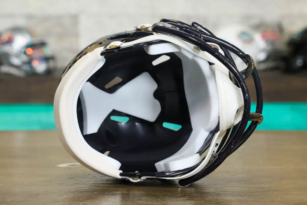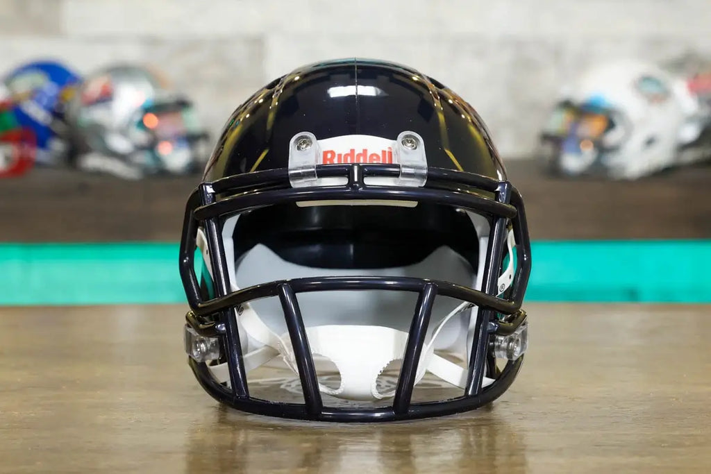 The Riddell Speed Mini Helmets are an easy and affordable way to join the collectors club and they make a perfect gift that everyone loves without breaking the bank! Riddell mini helmets are about half the size of the Authentic and Replica helmets. They model the official team designs and colors on a smaller scale. Coming in at about 6” tall, you can collect all your teams’ mini’s without taking up much room. Put them on your desk, a shelf, your dashboard, or get a Mini Helmet Hanger and put them on the wall!