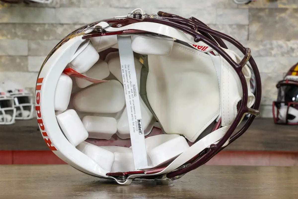 Riddell Speed ヘルメットは、歴史上最も人気があり象徴的なスタイルの 1 つであり、コレクターの間で最も求められているヘルメットの 1 つです。公式ライセンスを受けたこれらのヘルメットは、ディスプレイ、サイン収集、チーム スピリットの披露に最適です。当社や多くのチームが行っているように、 ヘルメット ハンガーを使用して、ヘルメットを棚や壁に目立つようにディスプレイすることをお勧めします。フェイスマスクに提供している 35 色以上からお選びいただけます。各ハンガーは注文に応じてコーティングされます。