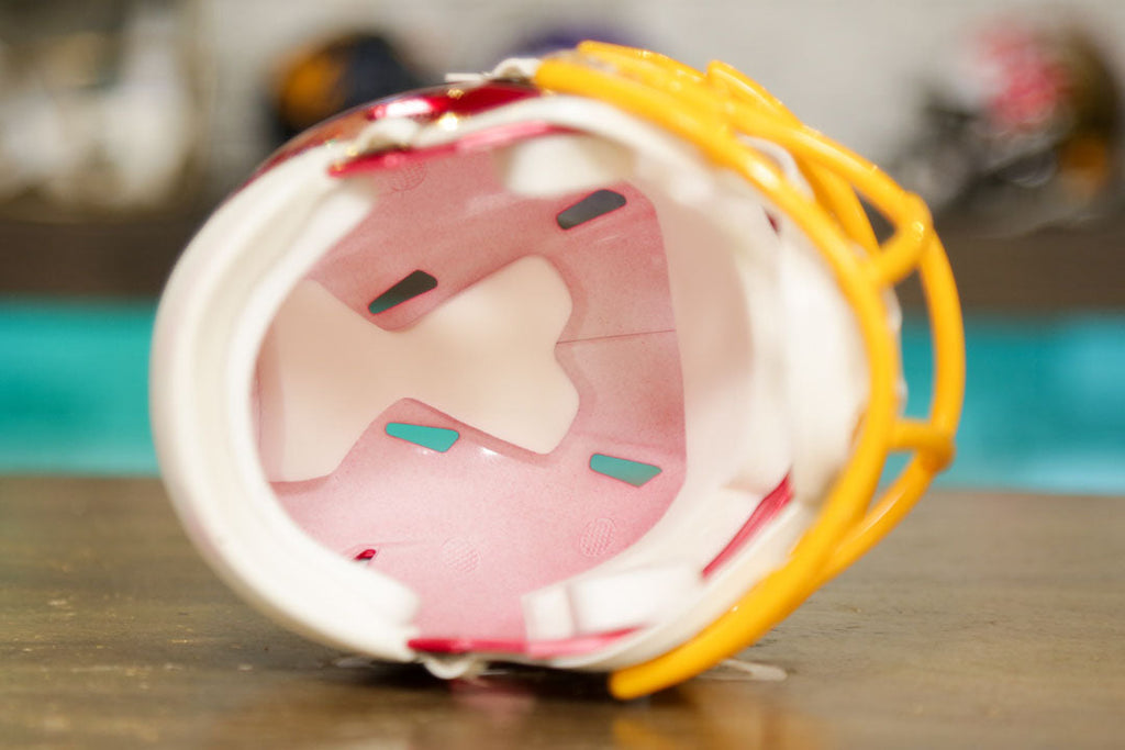 The Riddell Speed Mini Helmets are an easy and affordable way to join the collectors club and they make a perfect gift that everyone loves without breaking the bank! Riddell mini helmets are about half the size of the Authentic and Replica helmets. They model the official team designs and colors on a smaller scale. Coming in at about 6” tall, you can collect all your teams’ mini’s without taking up much room. Put them on your desk, a shelf, your dashboard, or get a Mini Helmet Hanger and put them on the wall!NICE BUILD!