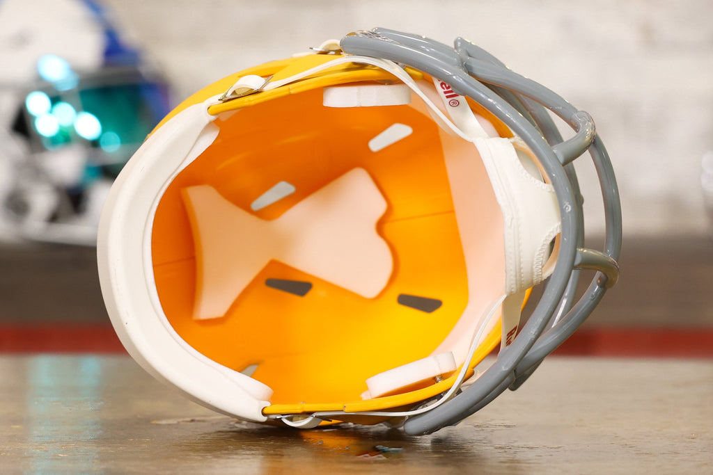 The Riddell Speed Mini Helmets are an easy and affordable way to join the collectors club and they make a perfect gift that everyone loves without breaking the bank! Riddell mini helmets are about half the size of the Authentic and Replica helmets. They model the official team designs and colors on a smaller scale. Coming in at about 6” tall, you can collect all your teams’ mini’s without taking up much room. Put them on your desk, a shelf, your dashboard, or get a Mini Helmet Hanger and put them on the wall!