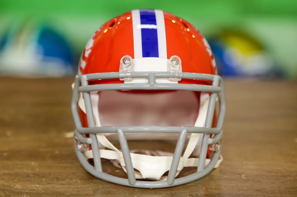 The Riddell Speed Mini Helmets are an easy and affordable way to join the collectors club and they make a perfect gift that everyone loves without breaking the bank! Riddell mini helmets are about half the size of the Authentic and Replica helmets. They model the official team designs and colors on a smaller scale. Coming in at about 6” tall, you can collect all your teams’ mini’s without taking up much room. Put them on your desk, a shelf, your dashboard, or get a Mini Helmet Hanger and put them on the wall!
