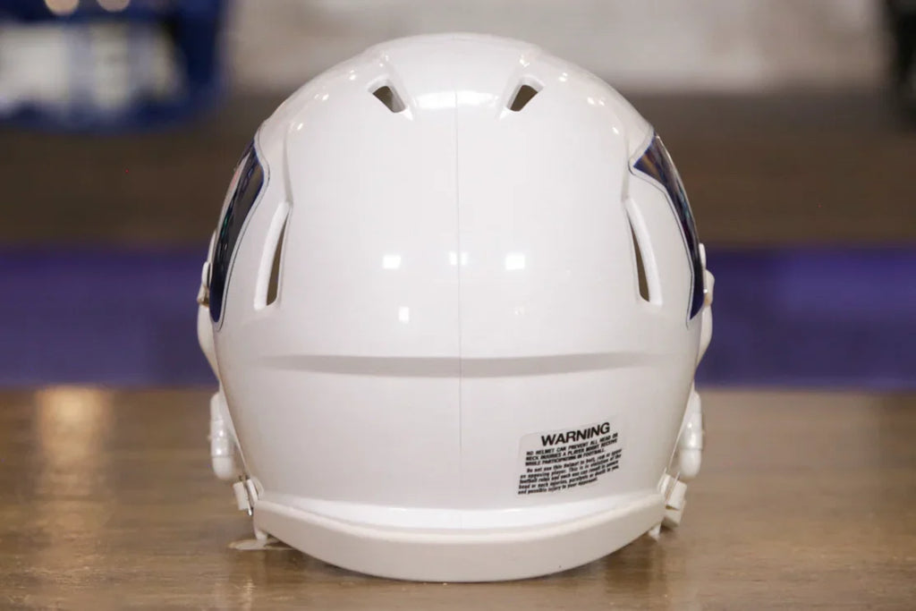 The Riddell Speed Mini Helmets are an easy and affordable way to join the collectors club and they make a perfect gift that everyone loves without breaking the bank! Riddell mini helmets are about half the size of the Authentic and Replica helmets. They model the official team designs and colors on a smaller scale. Coming in at about 6” tall, you can collect all your teams’ mini’s without taking up much room. Put them on your desk, a shelf, your dashboard, or get a Mini Helmet Hanger and put them on the wall!