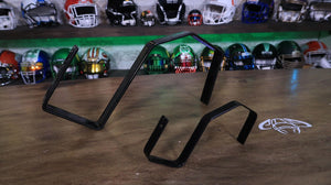 The Mini Helmet Hangers make a great addition to any Man Cave that has trophy helmets on display! These hangers will fit any mini helmet/helmet style you would like to show off. They keep the helmets out of reach of small children and provide a safe/easy way to showcase all of your collectible helmets.