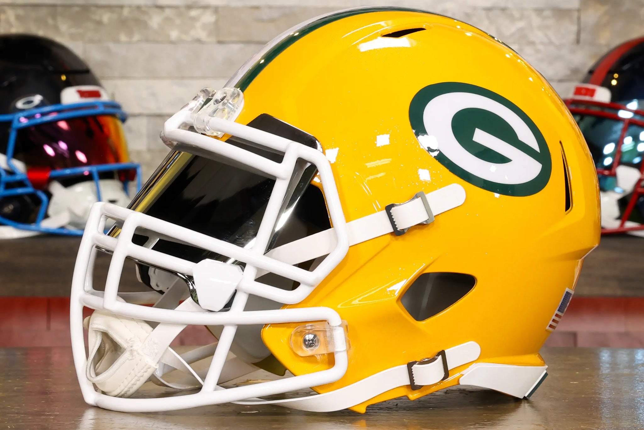 This Green Bay Packers Helmet is a Green Gridiron masterpiece, ready for the biggest Packers fan!