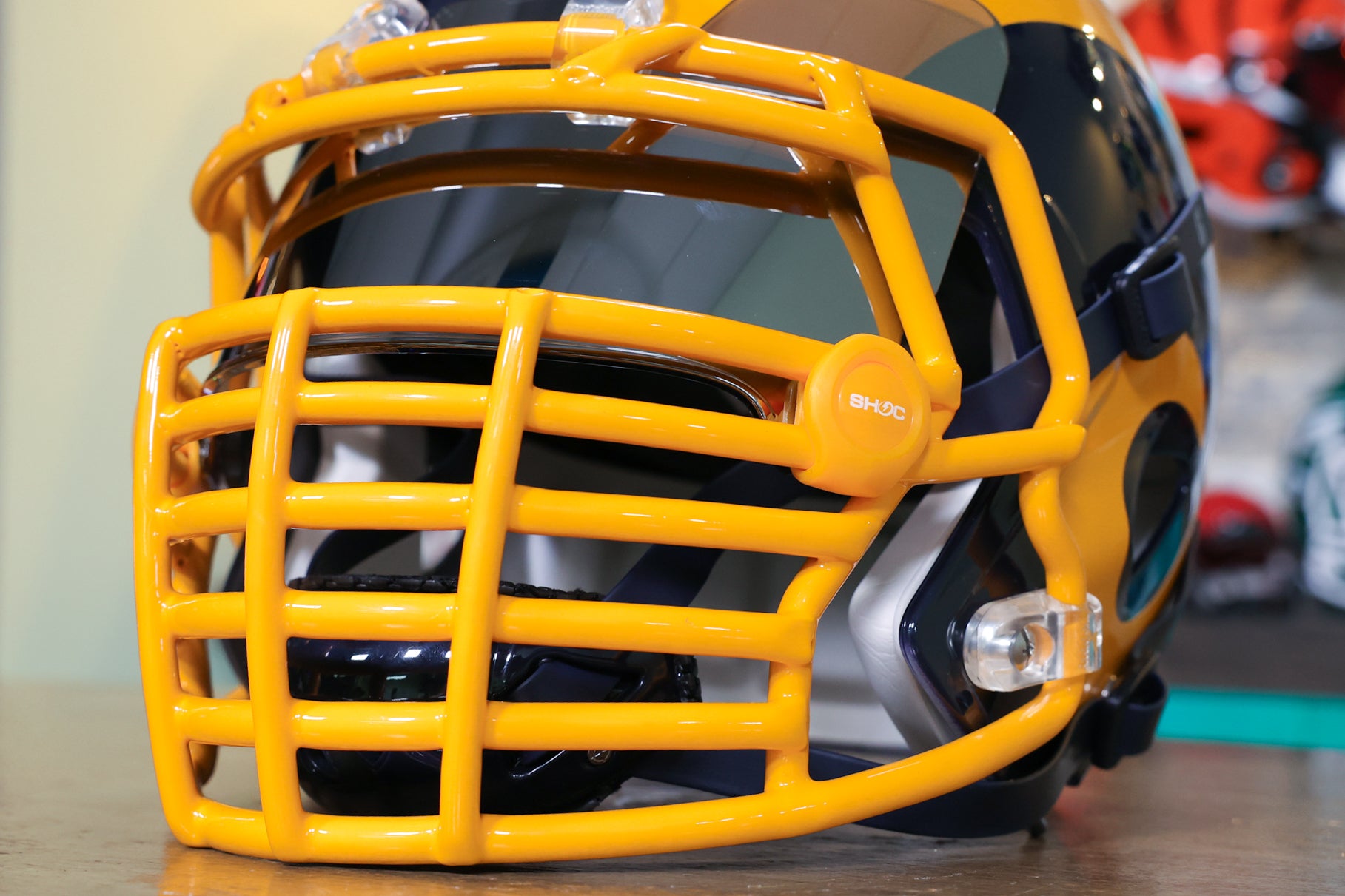 This Los Angeles Rams Helmet is a Green Gridiron masterpiece, ready for the biggest Rams fan!