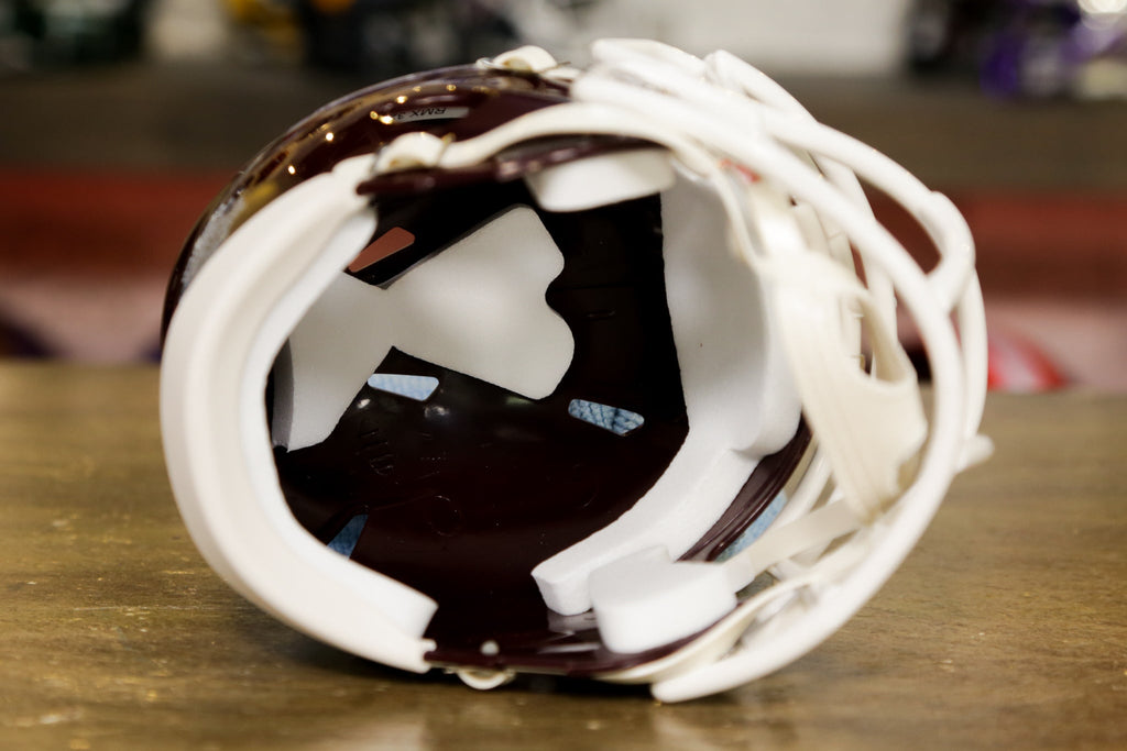 The Riddell Speed Mini Helmets are an easy and affordable way to join the collectors club and they make a perfect gift that everyone loves without breaking the bank! Riddell mini helmets are about half the size of the Authentic and Replica helmets. They model the official team designs and colors on a smaller scale. Coming in at about 6” tall, you can collect all your teams’ mini’s without taking up much room. Put them on your desk, a shelf, your dashboard, or get a Mini Helmet Hanger and put them on the wall!