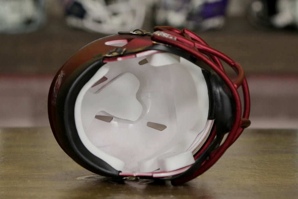 The Riddell Speed Mini Helmets are an easy and affordable way to join the collectors club and they make a perfect gift that everyone loves without breaking the bank! Riddell mini helmets are about half the size of the Authentic and Replica helmets. They model the official team designs and colors on a smaller scale. Coming in at about 6” tall, you can collect all your teams’ mini’s without taking up much room. Put them on your desk, a shelf, your dashboard, or get a Mini Helmet Hanger and put them on the wall!